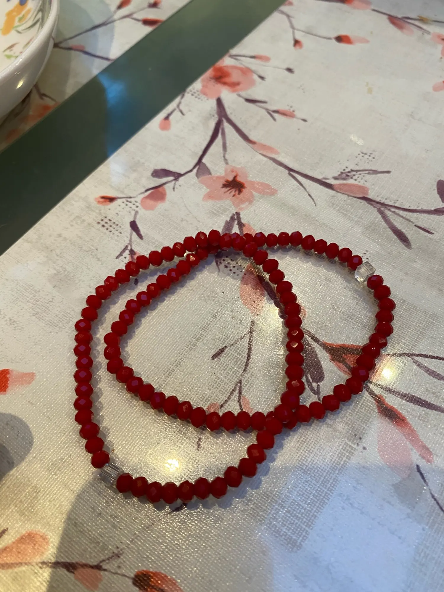 очень быстрая доставка, пришло два,что порадовало, очень блестят, бусинки похоже стеклянные, но, к сожалению, размер на ребёнка. а так очень миленькие.