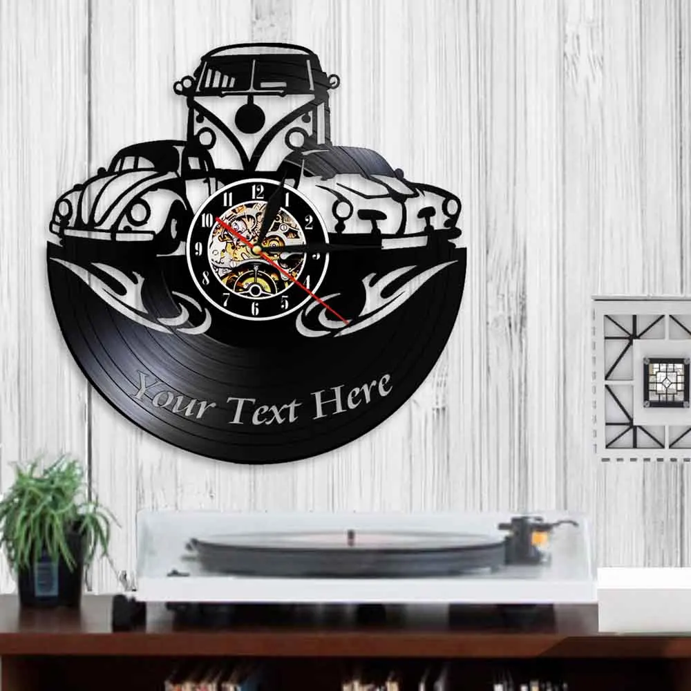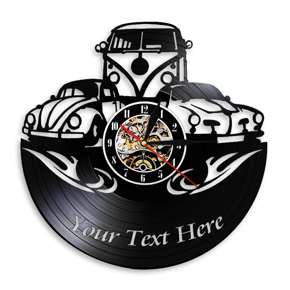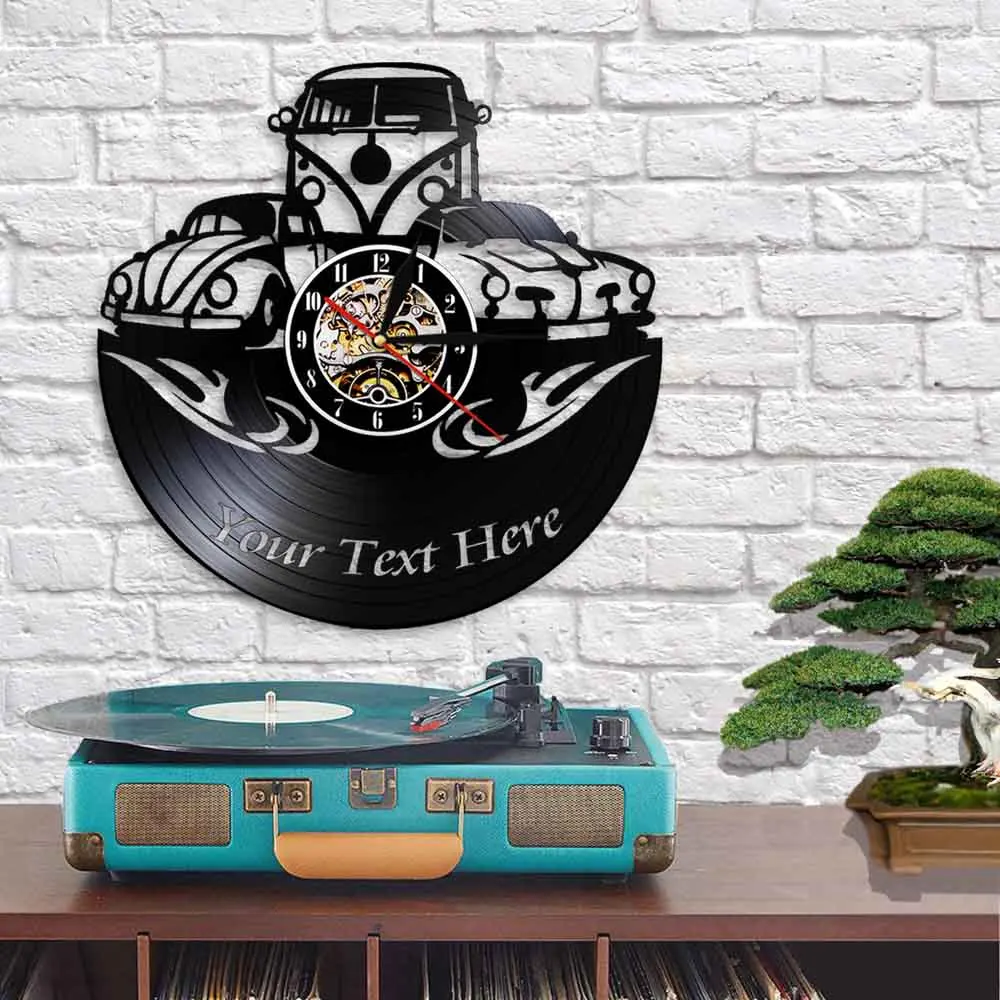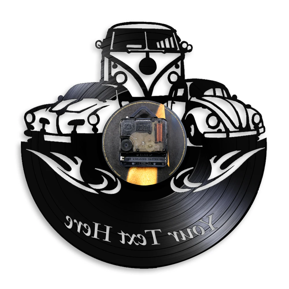 Настенные часы Camper Van для домашнего декора, персонализированные часы с логотипом, номер автомобиля, ретро-часы для автомобиля, виниловая запись, настенные часы
