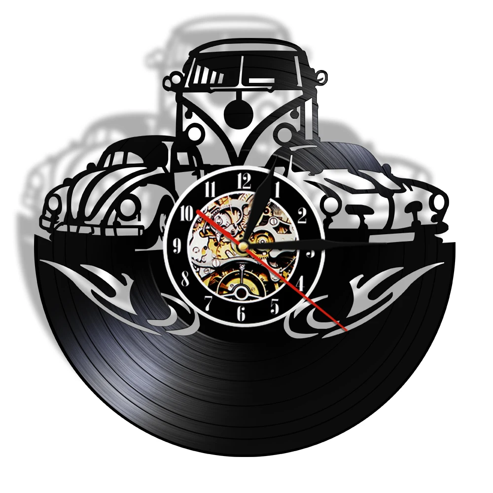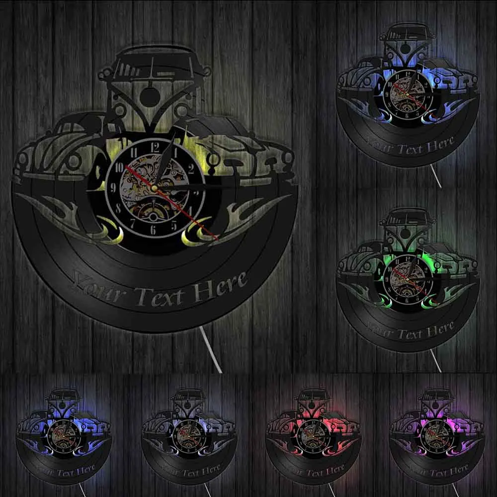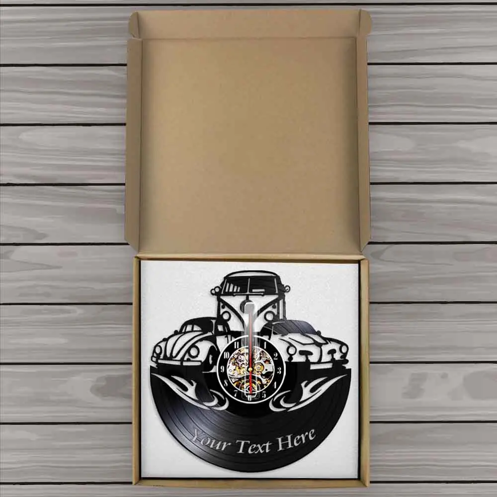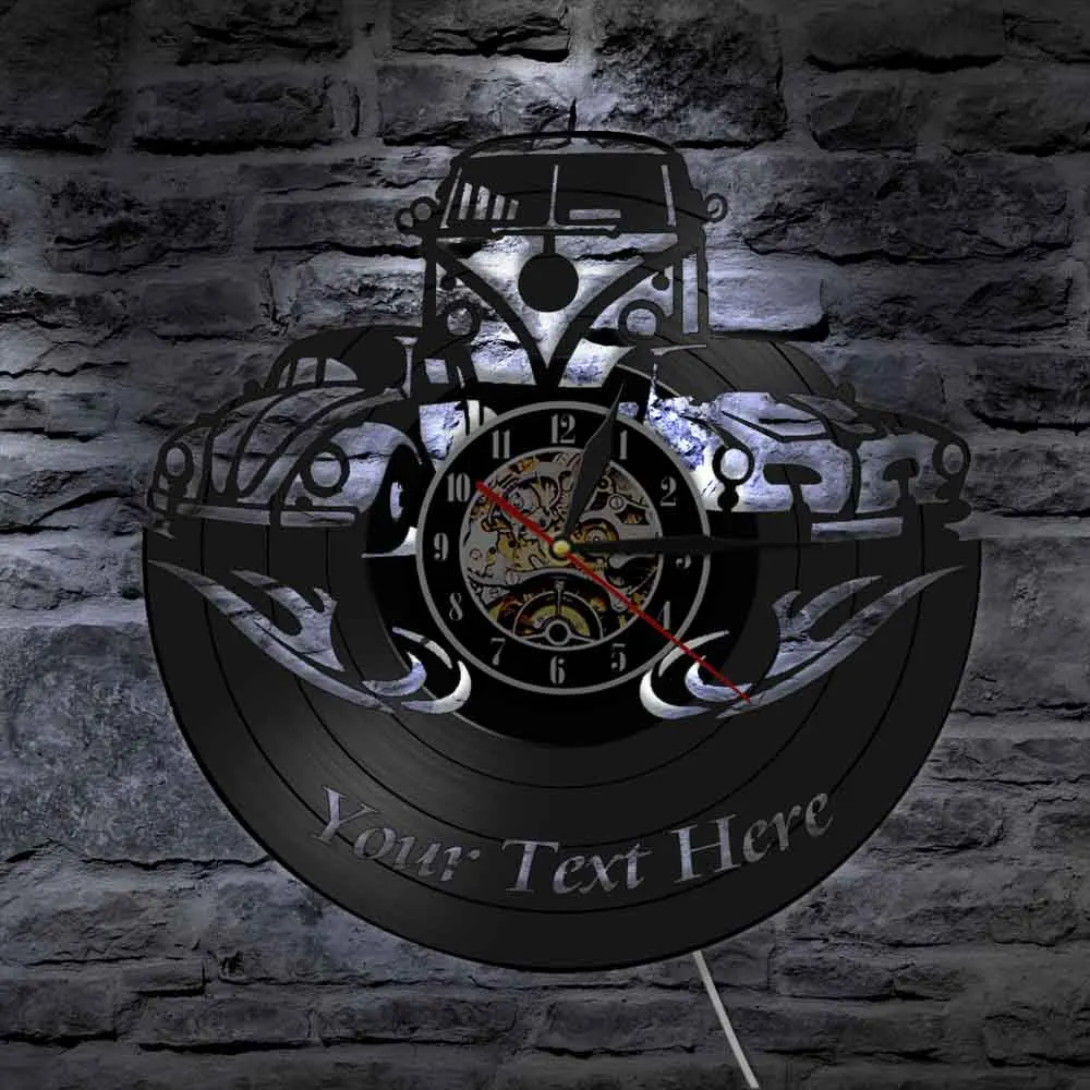 Настенные часы Camper Van для домашнего декора, персонализированные часы с логотипом, номер автомобиля, ретро-часы для автомобиля, виниловая запись, настенные часы