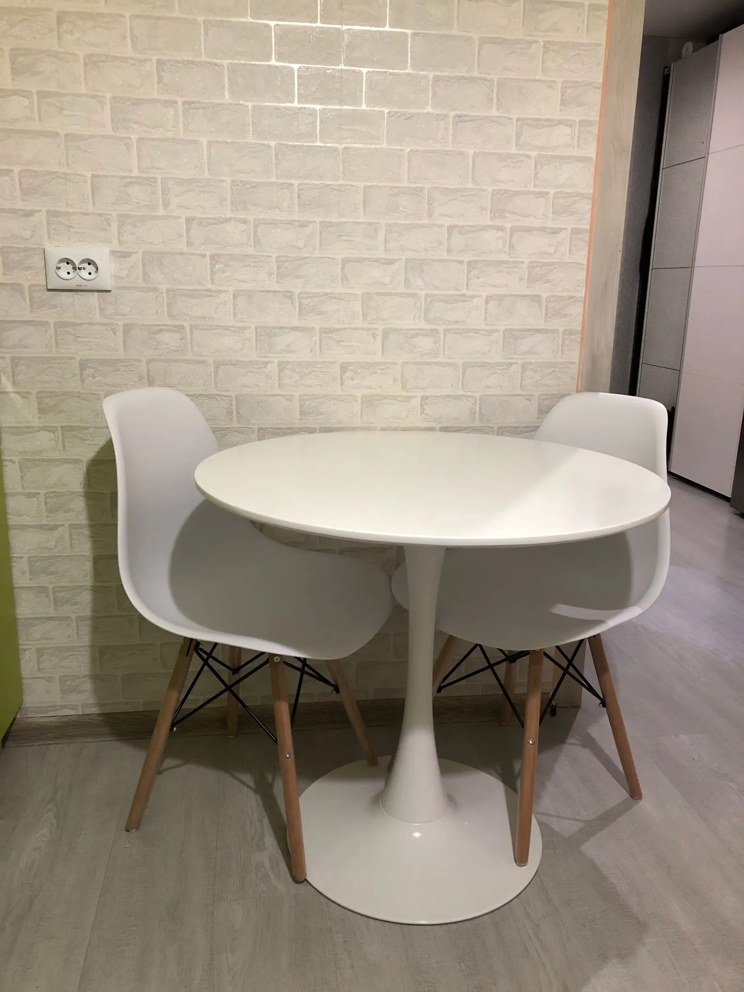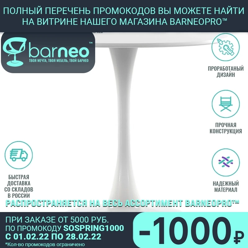 Barneo T-3 МДФ полуматовый интерьерный белый стол обеденный стол на металлическом основании стол круглый стол кухонный стол мебель для кухни стол современный стол в скандинавском стиле бесплатная доставка по России