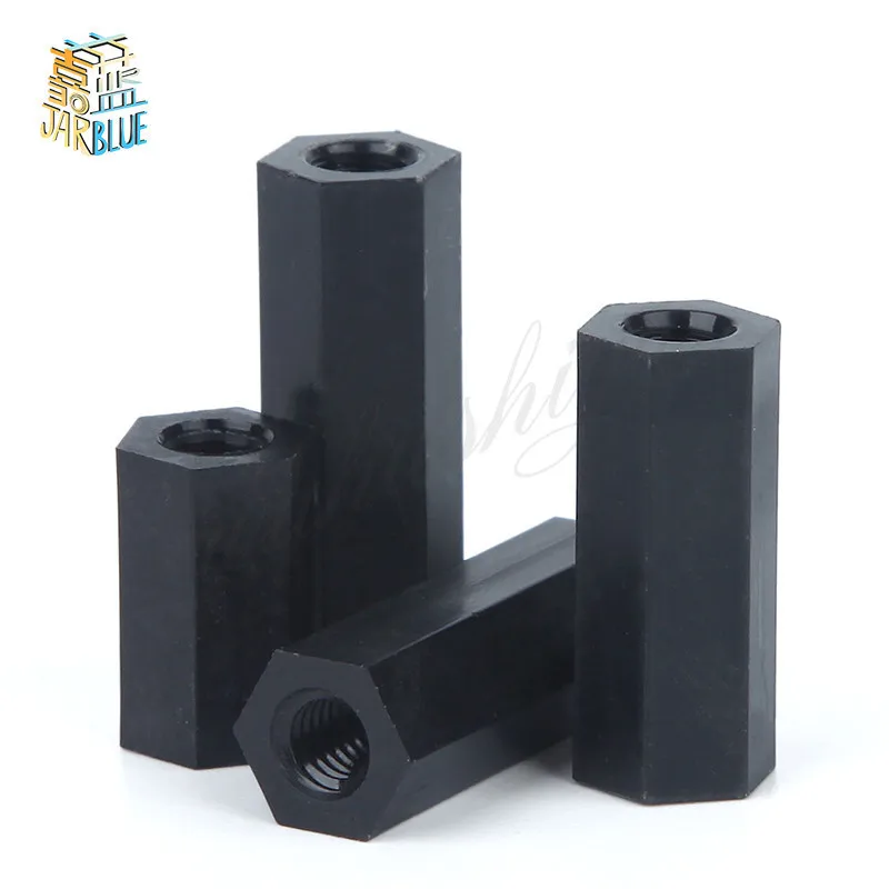 Черные распорные винты M2 M2, 5 M3 M4, 50 шт., шестигранная нейлоновая стойка, распорная стойка, плоская головка, двойной проход, нейлоновый пластик