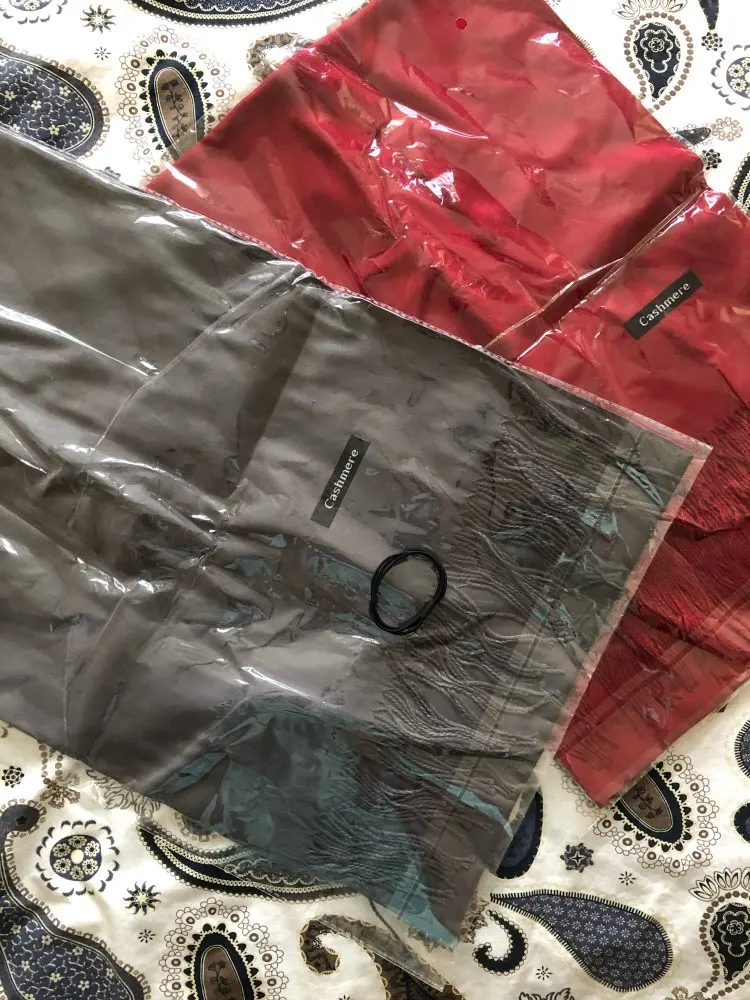 Я был немного разочарован качеством 1 шарф имеет пятно на нем, 2 имеет нитки висят из материала.