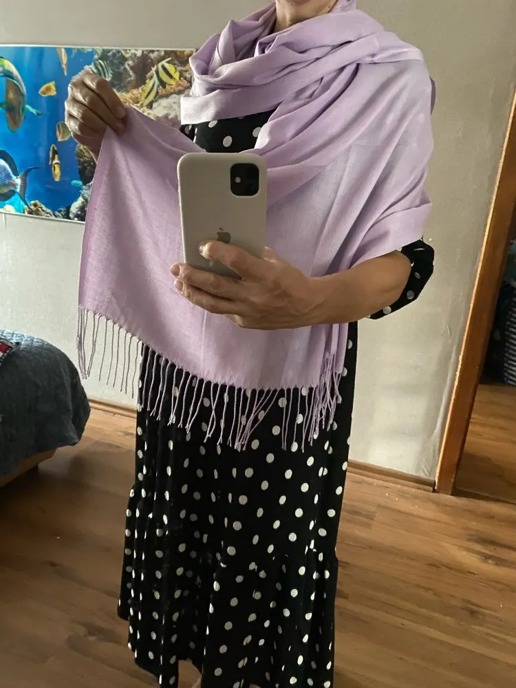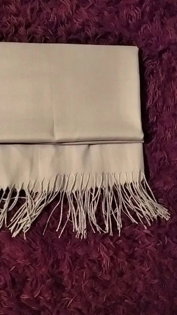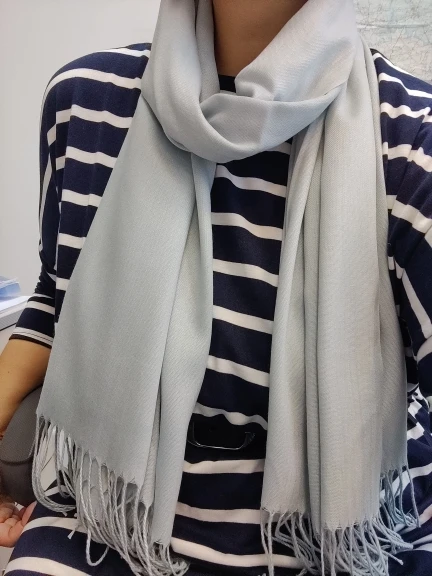 Отличный палантин, очень приятная ткань, нежная, шелковистая. Цвет нейтральный, подойдёт практически подо всё. Достаточно тонкий, на осень самое то. В подарок продавец положил резиночку для волос. Покупкой очень довольна! Спасибо продавцу!