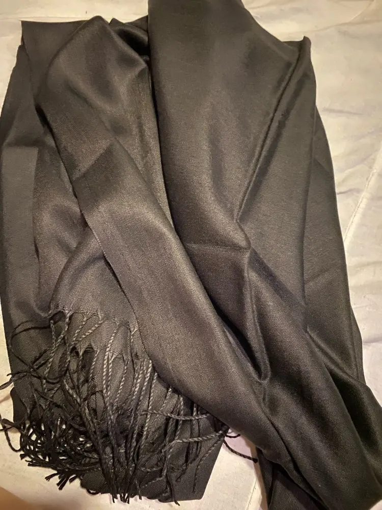 Шарф очень приятный на ощупь: тонкий, мягкий, шелковистый. Цвет немного отличается. В подарок продавец положил резинку для волос. Доставлен в постамат Цайняо (маганин Связной) за 11 дней с момента заказа. Забрать посылку надо в течение 72ч.