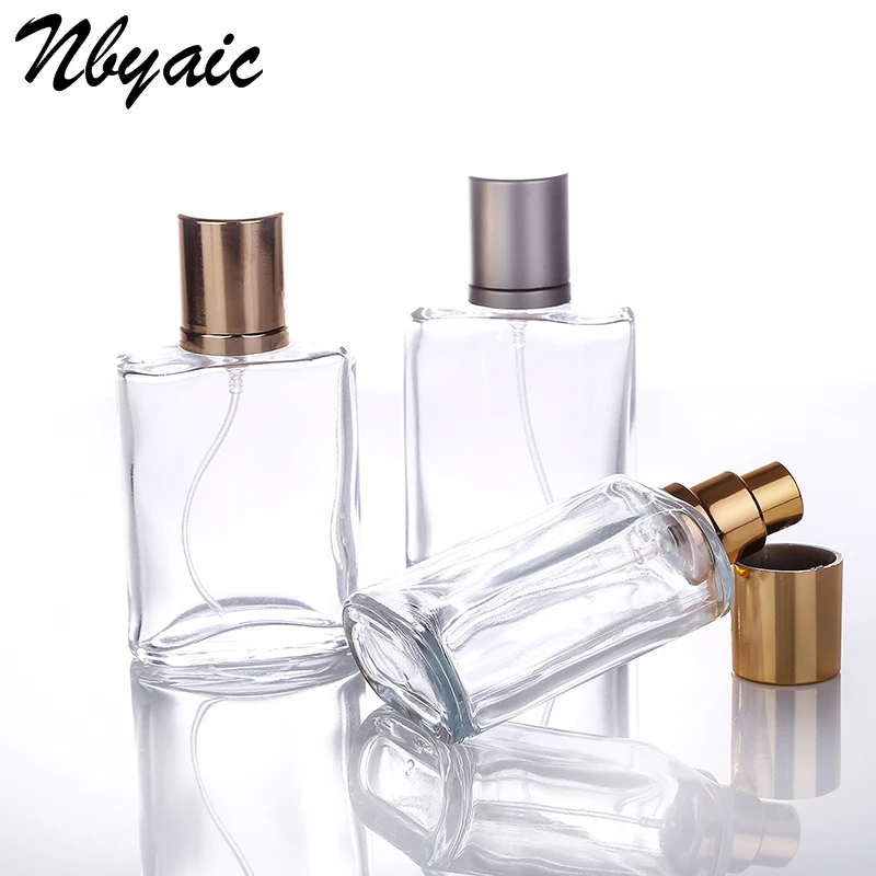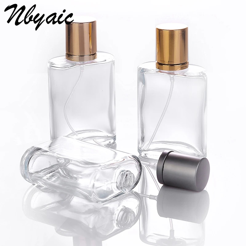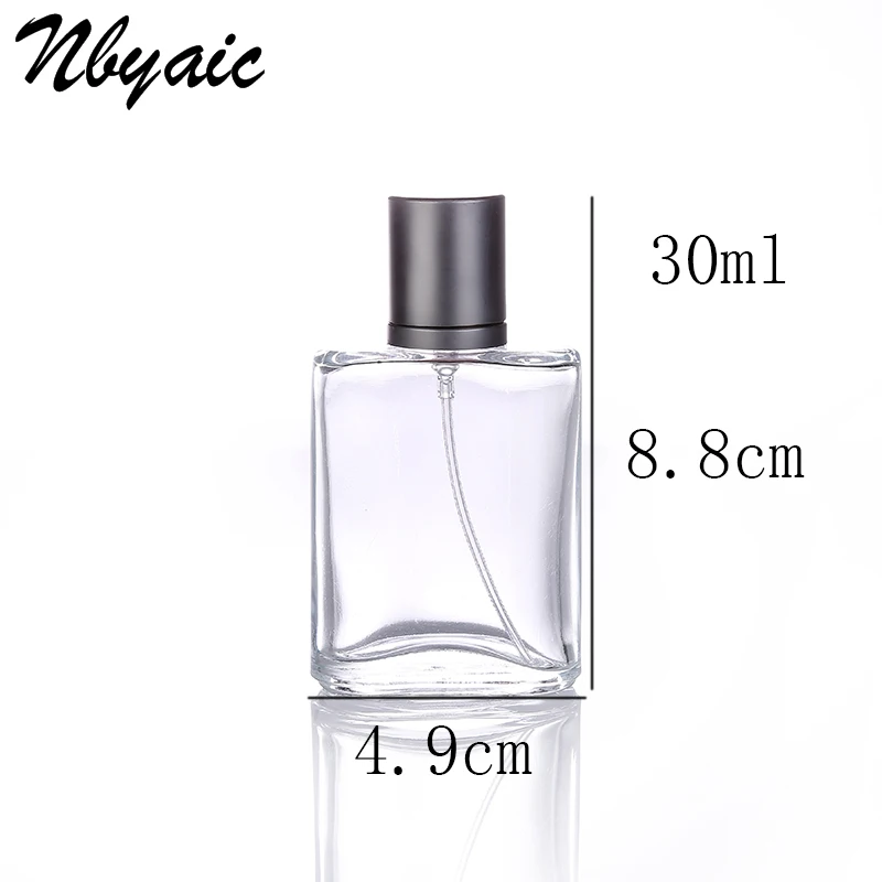 Флакон для духов Nbyaic, высококлассный прозрачный стеклянный, 1 шт., 30 мл, золотая и серая крышка, электрохимический алюминиевый спринклер, флакон для духов
