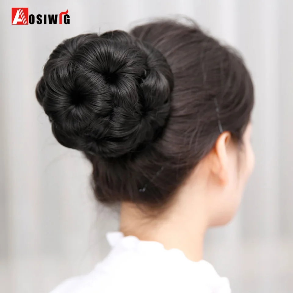 Шиньон AOSIWIG с кудрявыми волосами, пучок с зажимом в виде пончика, удлинители волос для женщин, синтетический высокотемпературный шиньон из волокна