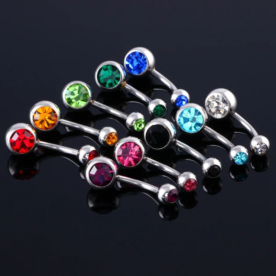 Кольцо для пупка с фианитом 316l хирургическая сталь двойная, 1 шт. в партии, разноцветное Ювелирное Украшение для пирсинга пупка с драгоценным камнем, 14 г