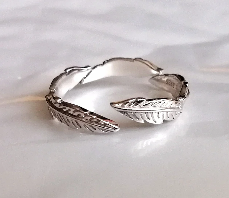 Кольцо женское из серебра горячая Распродажа пробы с крыльями из перьев, регулируемое, 925 пробы