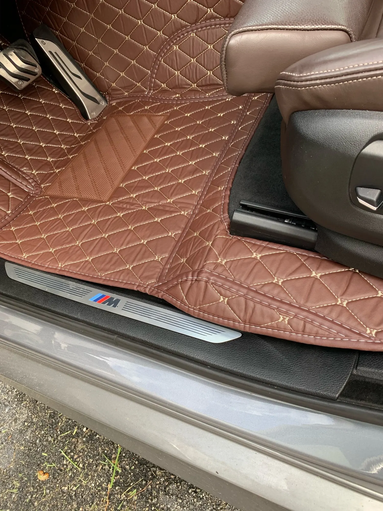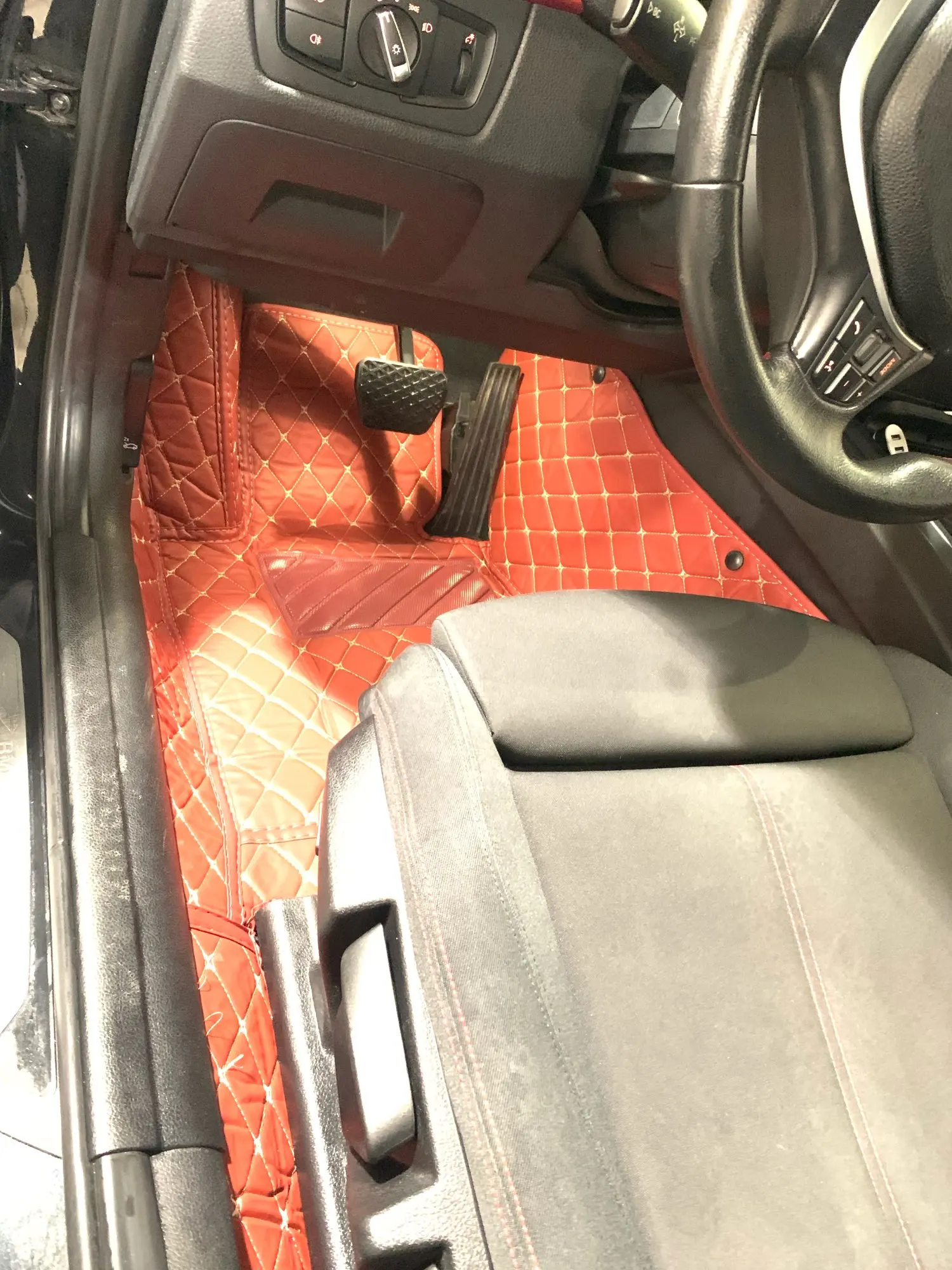 BMW e88. Они не хорошо сидят спереди. Водительская сторона опасна, так как ее можно поймать вокруг педалей. Разочарован. Не будет использоваться.