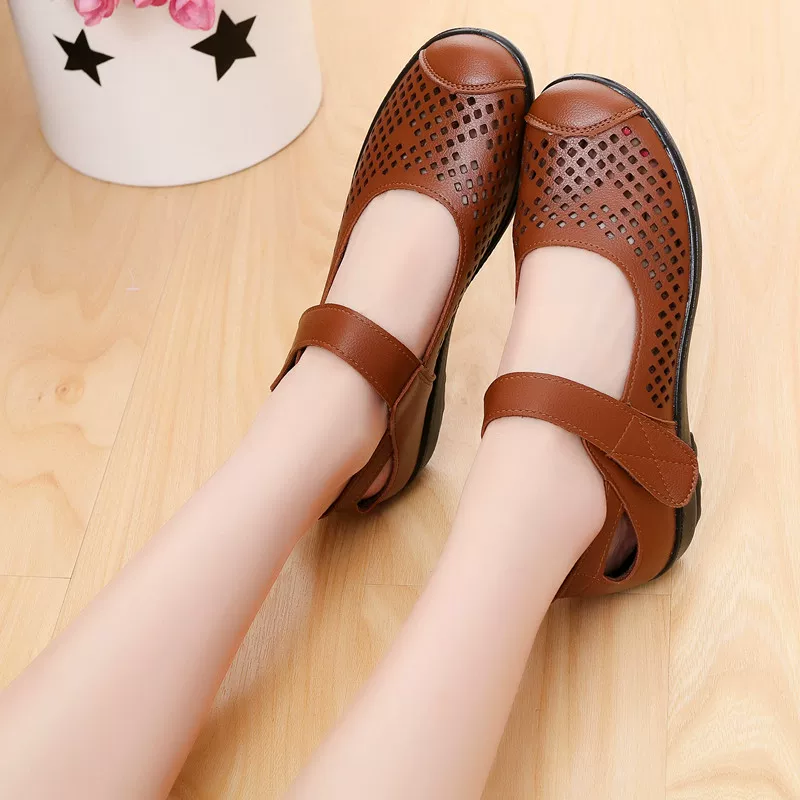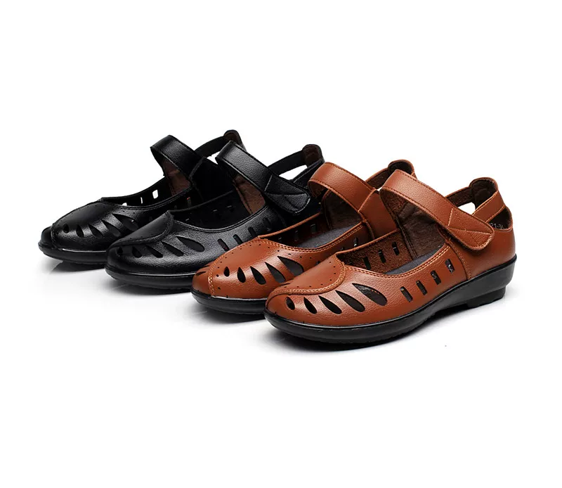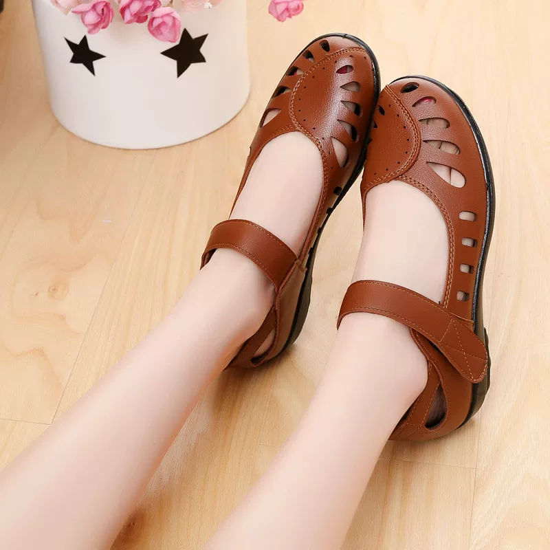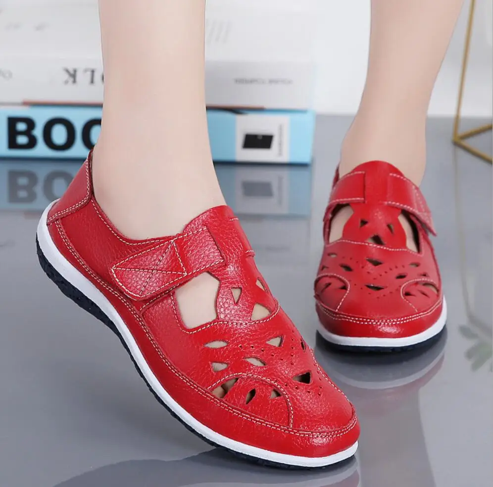 Сандалии женские из натуральной кожи, босоножки с перфорацией, удобная повседневная обувь на плоской подошве, модные летние