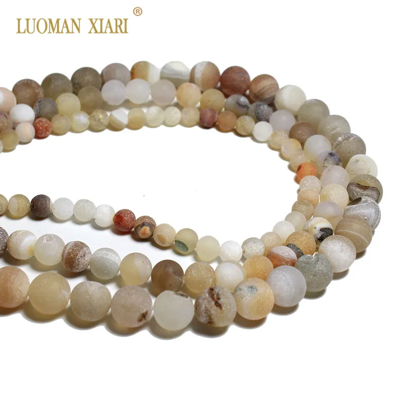 Оптовая продажа натуральный матовый пробелов бусы из камня Агата для изготовления ювелирных изделий DIY браслет ожерелье 6/8/10 мм нить 15''