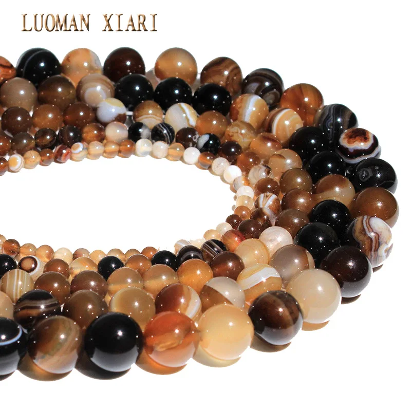 Оптовая продажа натуральный кофе в полоску агата коричневый натуральный камень бусины Кристалл бусины для изготовления ювелирных изделий 4 мм 6 мм 8 мм 10 мм 12 мм нитка