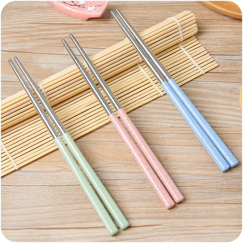 Палочки для еды из нержавеющей стали, корейские палочки для еды, Нескользящие металлические многоразовые пищевые палочки, аксессуары для суши кухня, инструменты