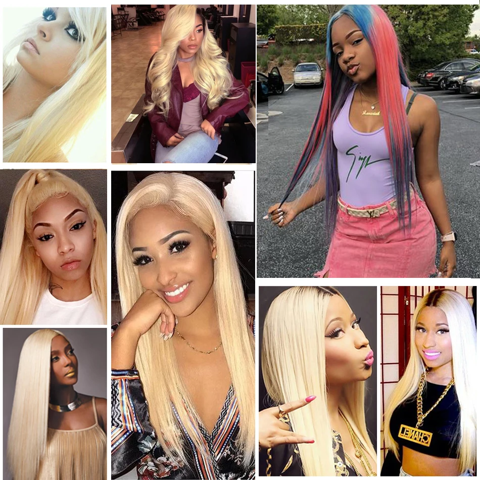 Прямые бразильские волосы Celie, 613 блонд, пряди с закрытием, 3 пряди с закрытием, человеческие волосы Remy, пряди с закрытием