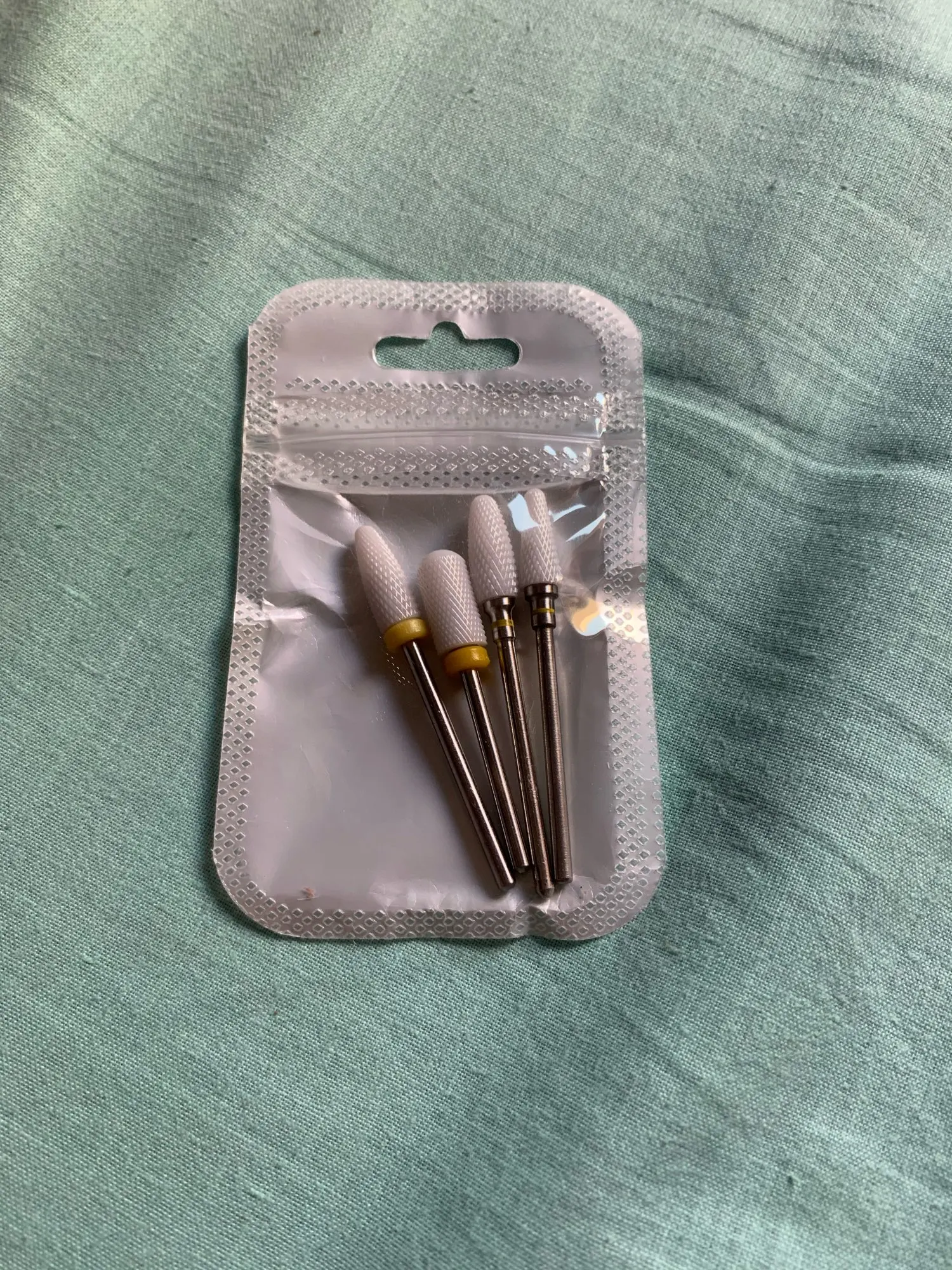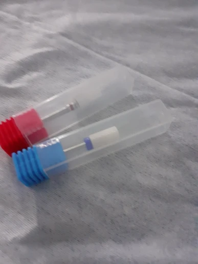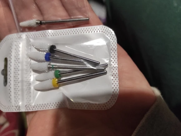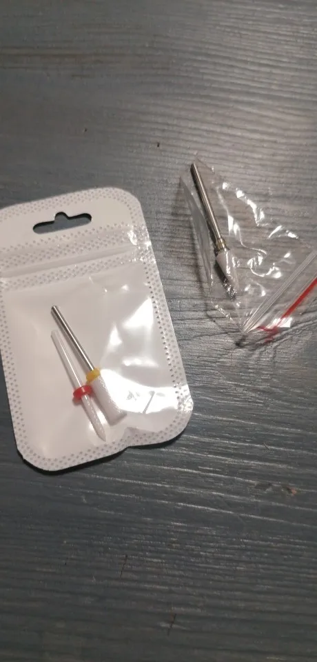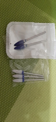 Фрезы пришли очень быстро. Синяя фреза отлично справляется со своей задачей, фреза с жёлтой насечкой снимает даже гель, розовая с красной насечкой расстроила, оставляет борозды, а тонкая фреза пришла с браком, дырочка прям возле кончика. В целом продавца рекомендую.