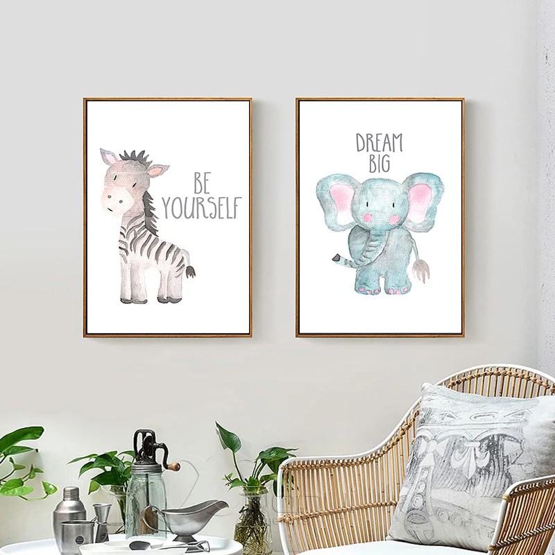Постеры для детской комнаты Babykamer картина с животными Настенная картина с изображением слона для детской комнаты Декор постер и принты без рамки