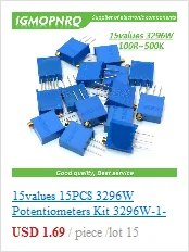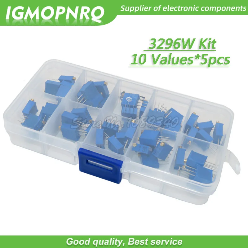 3296 Вт комплект многооборотный Подстроечный резистор потенциометр 3296W-1-103LF с коробкой 500 Ом 1k 2k 5k 10k 20k 50k 100k 200k 500k 501 102 202 502 103