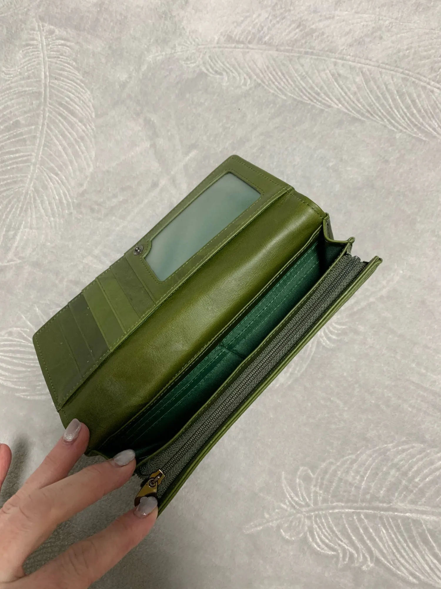 Зеленый цвет очень красивый, а натуральная кожа гибкая.