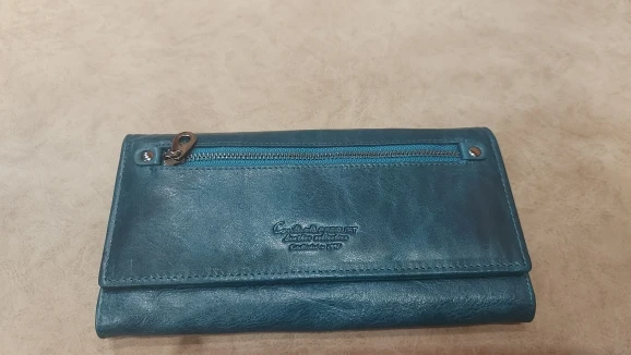 Цвет отличается от цвета на фото. Это разочаровывает. Цвет не бирюзовый, темно-синий. Кожа среднего качества. Доставка занимает больше месяца!