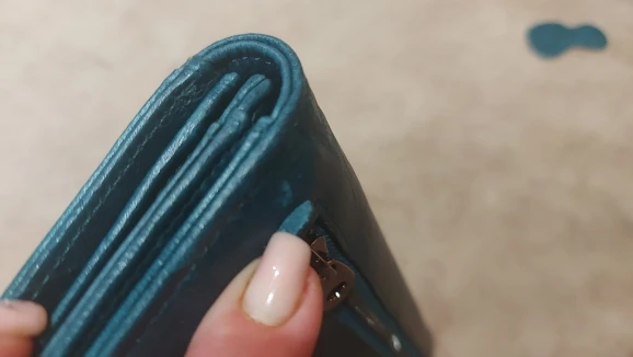 Цвет очень далек от описания. Кожа как будто ничем не обработана. Кошелек уже пришел с царапинами как от ногтей. Написала продавцу. Посоветовали помазать кремом для рук и потереть. Естественно, не помогло. После первого же использования в сумке кошелек стал весь в отметинах от телефона, ключей и т.п., внутри образовались царапины от кредитных карт (которые лежат в отсеках). Разочарована.
