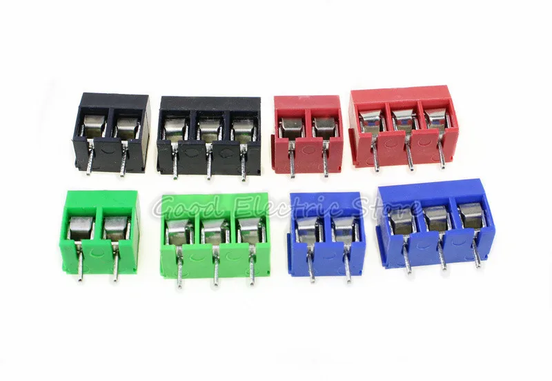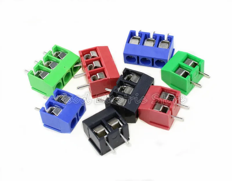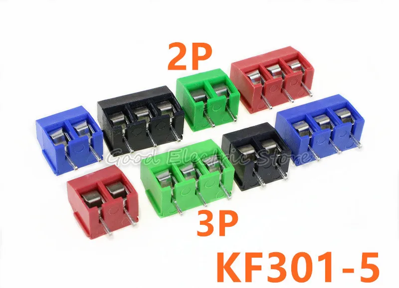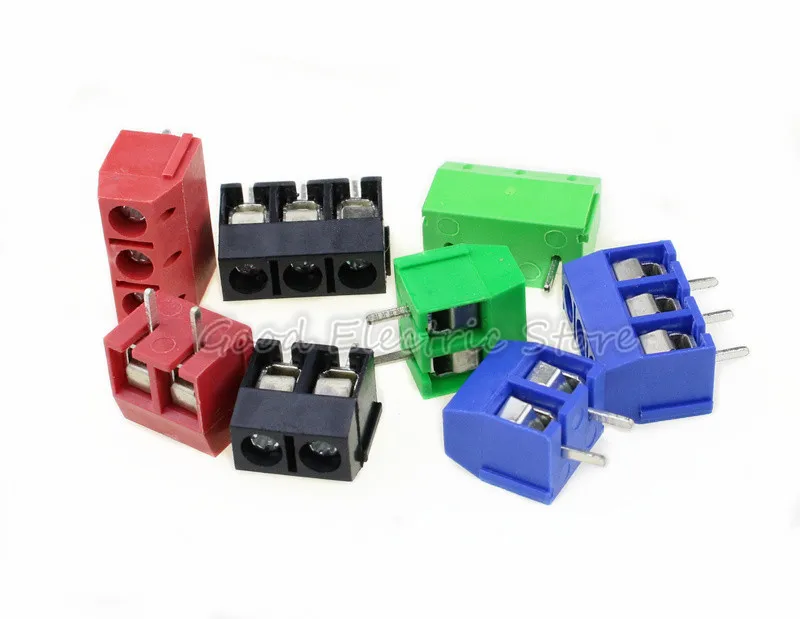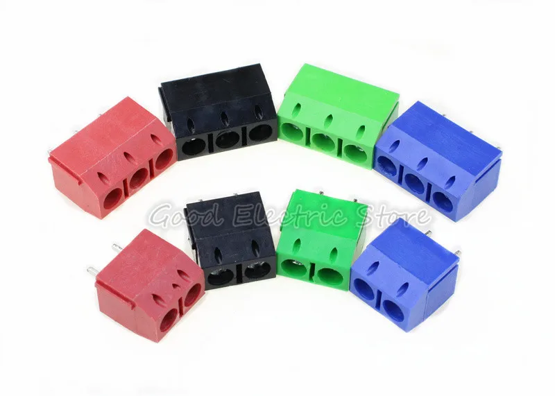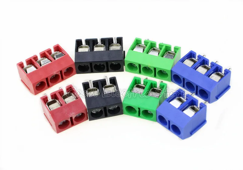Бесплатная доставка, 20 шт.лот, шаг 5,0 мм, прямой контакт, 2P 3P, винт PCB, Клеммная колодка, коннектор, синий, зеленый, красный