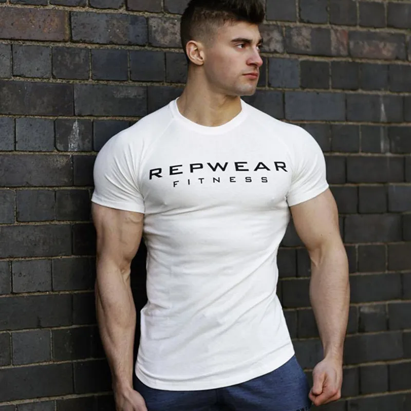 Футболка мужская хлопковая с коротким рукавом, облегающая тенниска для спортивного зала, фитнеса, бодибилдинга, брендовая майка, Повседневная модная одежда, лето