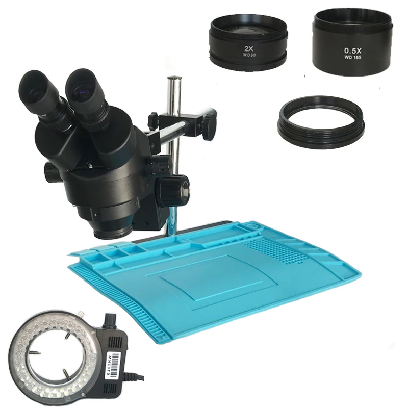 Бинокулярный стереомикроскоп WF10X, 3,5x-45X или 7-45X, окуляр с 56 светодиодный дами Светильник Универсальный кронштейн, большой изоляционный рабочий коврик