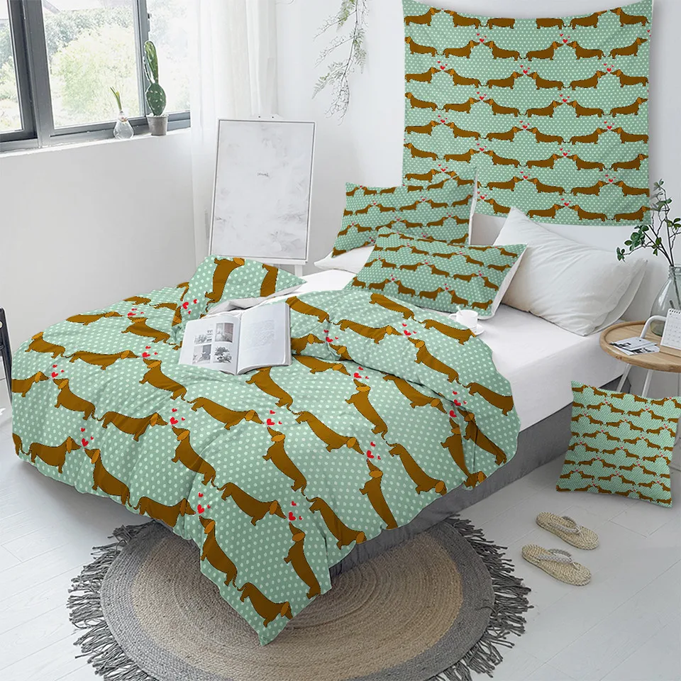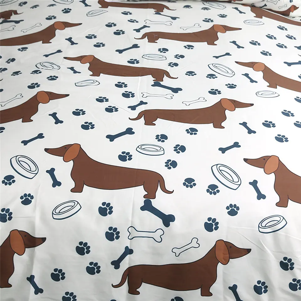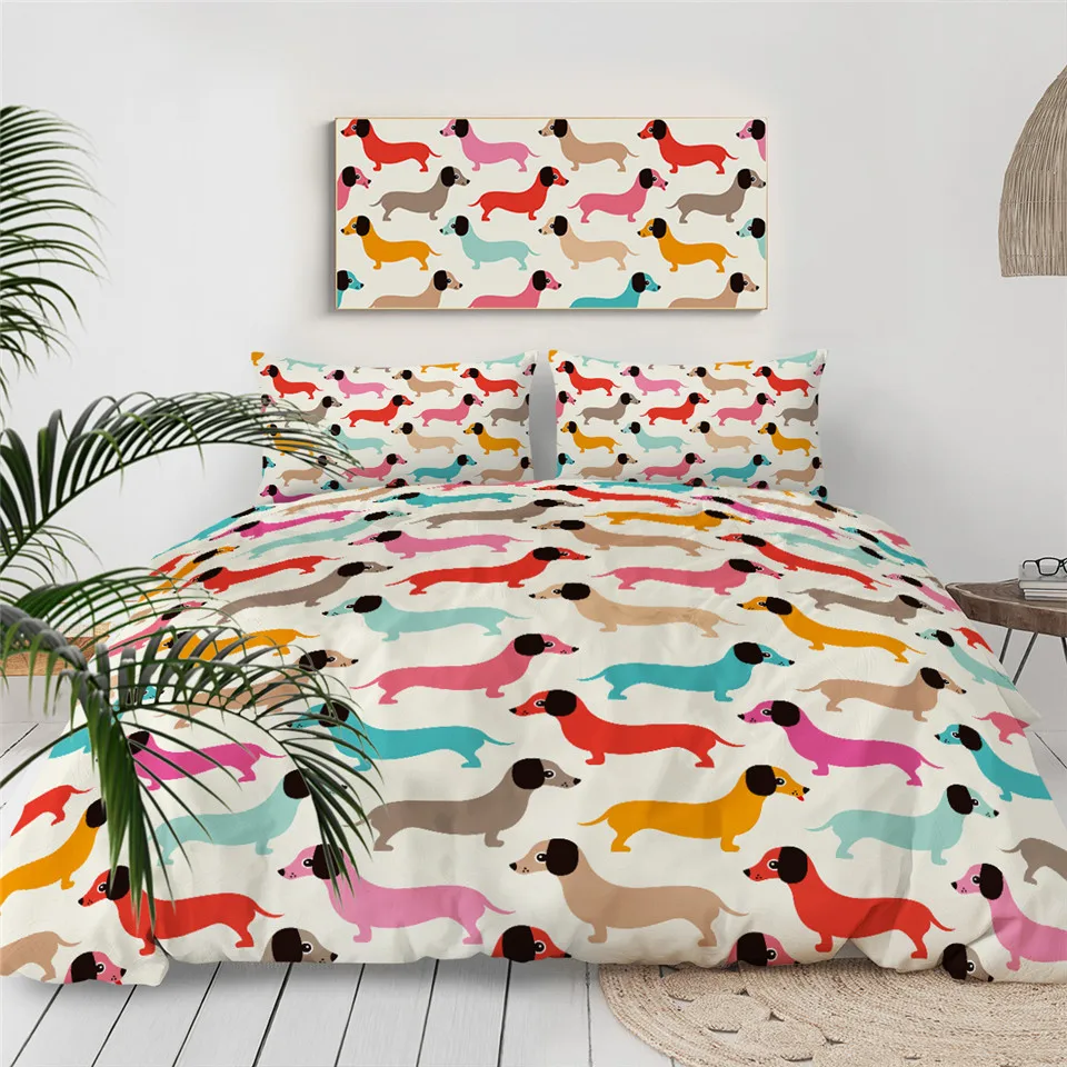 Постельное белье на выход такса, Комплект постельного белья, милый цветной щенок, пододеяльник, мультяшный чехол для кровати, домашний текстиль для домашних питомцев, королева, 3 шт., Прямая поставка