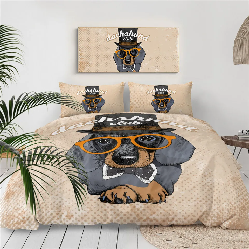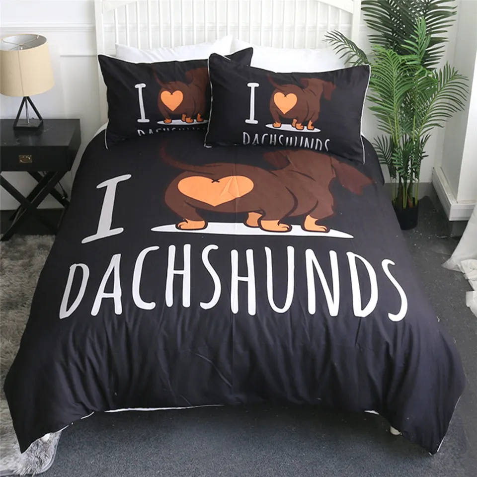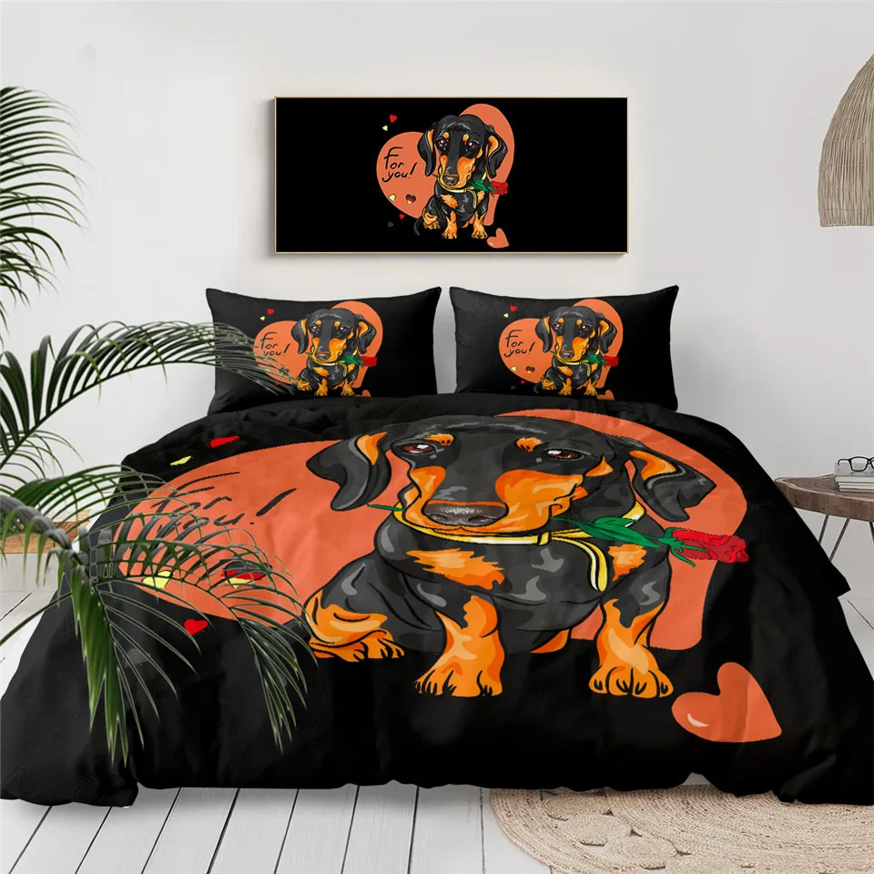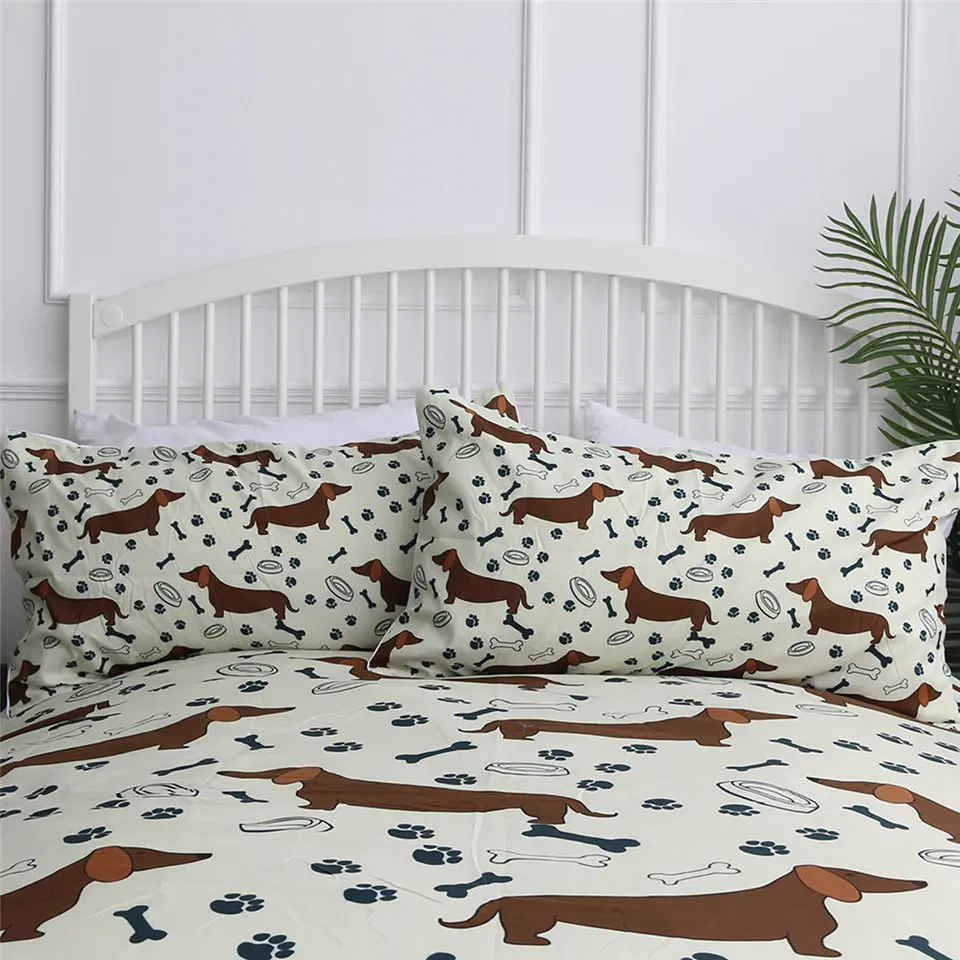 Постельное белье на выход такса, Комплект постельного белья, милый цветной щенок, пододеяльник, мультяшный чехол для кровати, домашний текстиль для домашних питомцев, королева, 3 шт., Прямая поставка