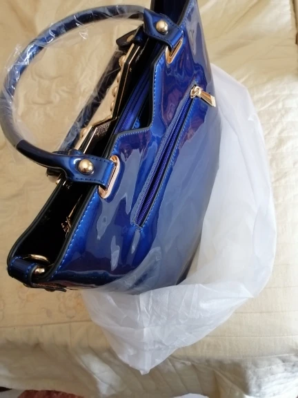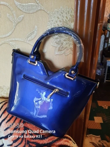 Сумка пришла нереально быстро! Сделана качественно, на теплое время года - в самый раз, зимой носить не рискну, чтобы лакировка не потрескалась, а так я очень довольна.