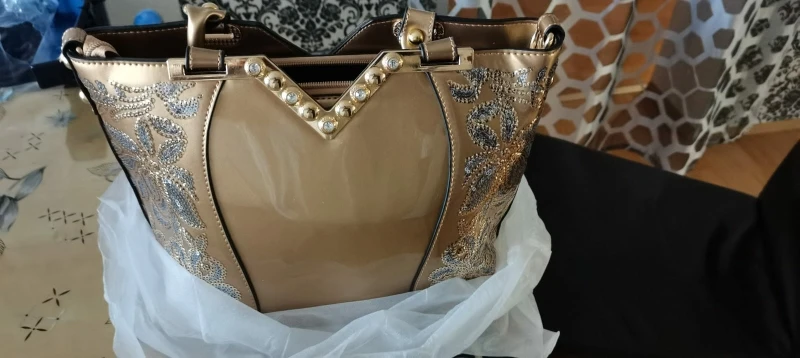 Я очень довольна сумкой, качество отличное, праздничный вариант. всё хорошо прошито и по размеру не маленькая и её большая, как раз всё необходимое влазит. Во время перевозки образовался небольшой залом,но он разровняется во время носки. Упаковано всё было хорошо,внутри воздушный мешок. Отдельное спасибо за подвеску, она идеально подошла к серьгам, которые уже были у меня. посылка пришла в Украину ща три недели.