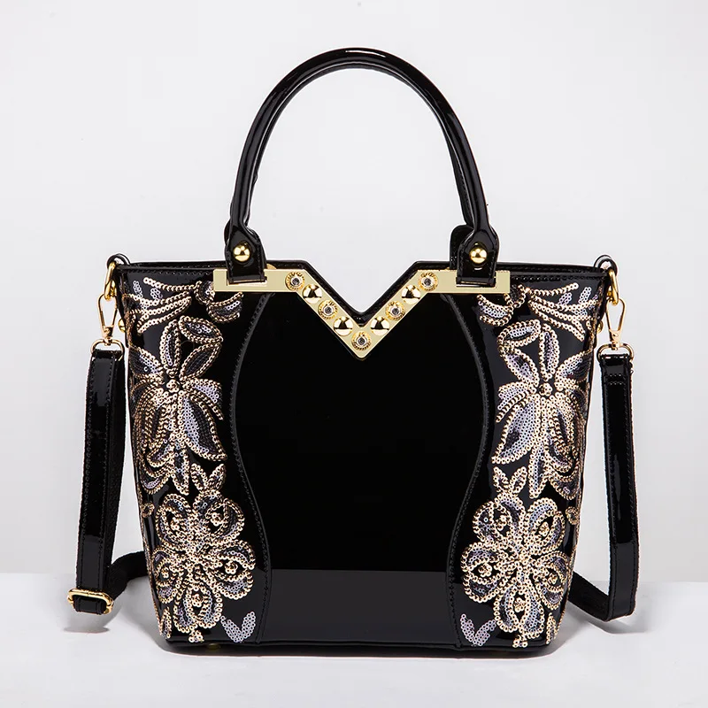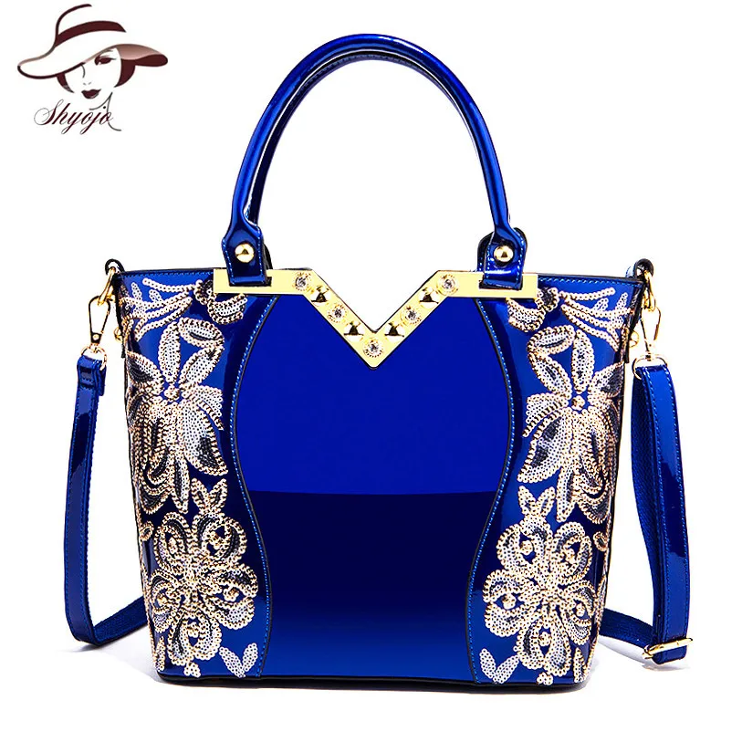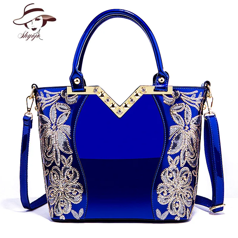 Сумка на плечо женская из лакированной кожи, вечерняя сумочка для вечерние, брендовая дизайнерская вместительная тоут через плечо с блестками, 2021