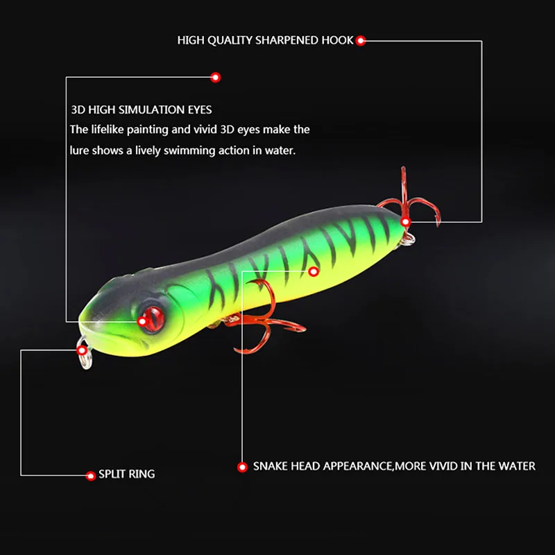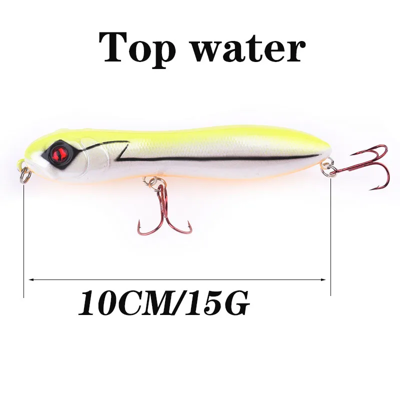 Рыболовная приманка-карандаш со змеиной головой, 10 см, 15 г, плавающий кренкбейт, морской окунь, щука, топвотер, 3D-глаза, пластиковые рыболовные воблеры, снасти, 1 шт.