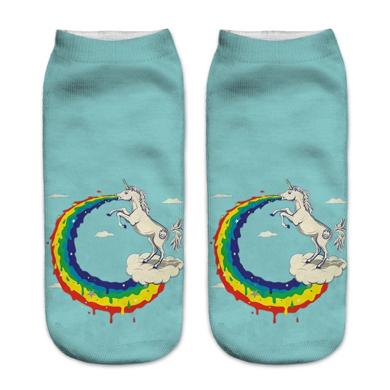 Носки женские в стиле Харадзюку С 3D принтом единорога, 16 рисунков, милые повседневные Популярные до щиколотки