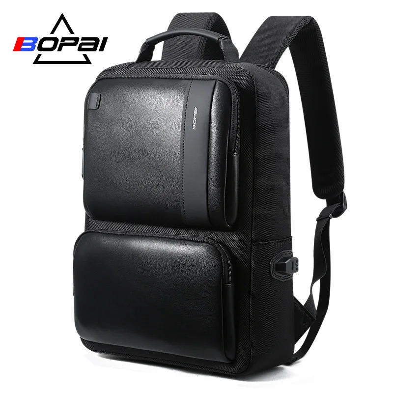 BOPAI Mochilas, корейский стиль, 15,6-дюймовый рюкзак для ноутбука, USB зарядка, 14 дюймов, водонепроницаемый мужской рюкзак, дорожный рюкзак, черный рюкзак