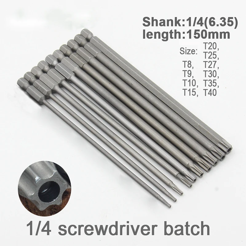 Набор Магнитных отверток S2, 1 шт., инструменты для электрической отвертки T8 T9 T10 T15 T20 T25 T27 T30 T35 T40, длина 150 мм