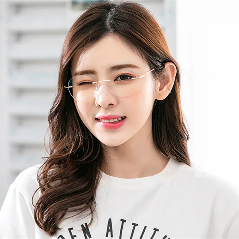 Готовые женские очки для близорукости без оправы круглые линзы Титановые женские очки для коррекции зрения по рецепту от-0,50 до-6,0