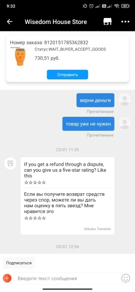 Уважаемые покупатели. Оставляю отзыв чтобы все были в курсе по поводу продавца. Человек обманщик в прямом смысле. Заказ был сделан ещё в октябре месяце 2020г. заказ до сих пор не пришёл. по поводу возврата денег продавец в споре всё время писал не вернёт подождите ещё пару дней. хорошо сейчас вмешался Али экспресс. и деньги возвращают. Продавец ещё мне ставил ультиматум за мои же деньги.Смотреть в фото. так что думайте перед тем как заказать. спасибо за внимание.