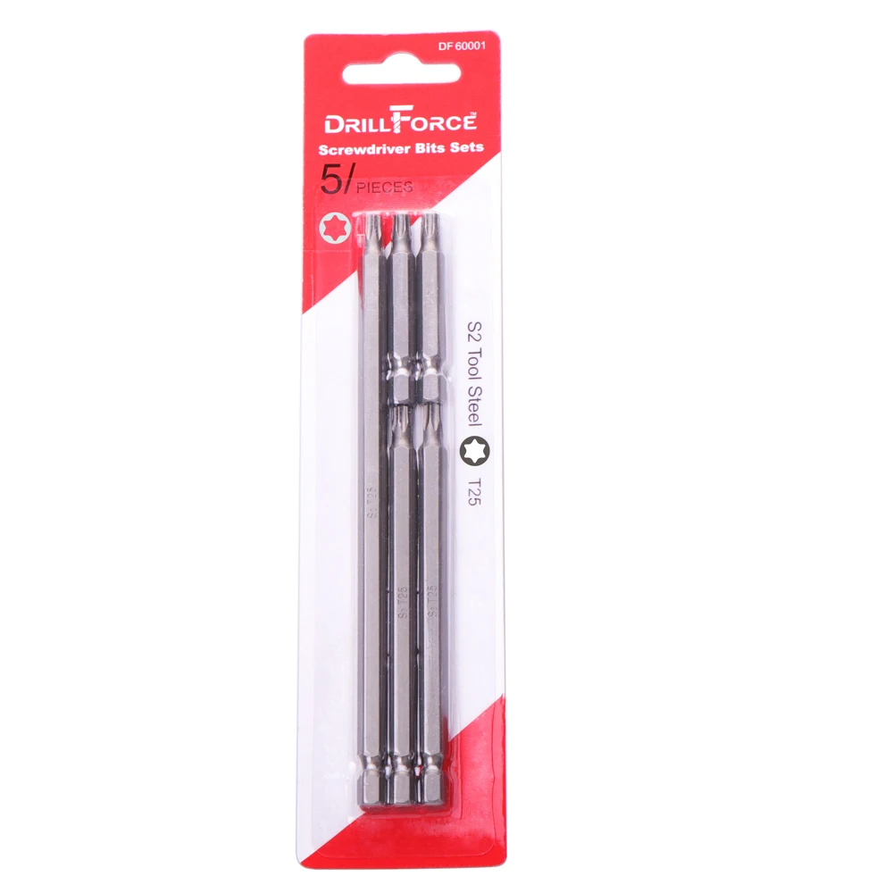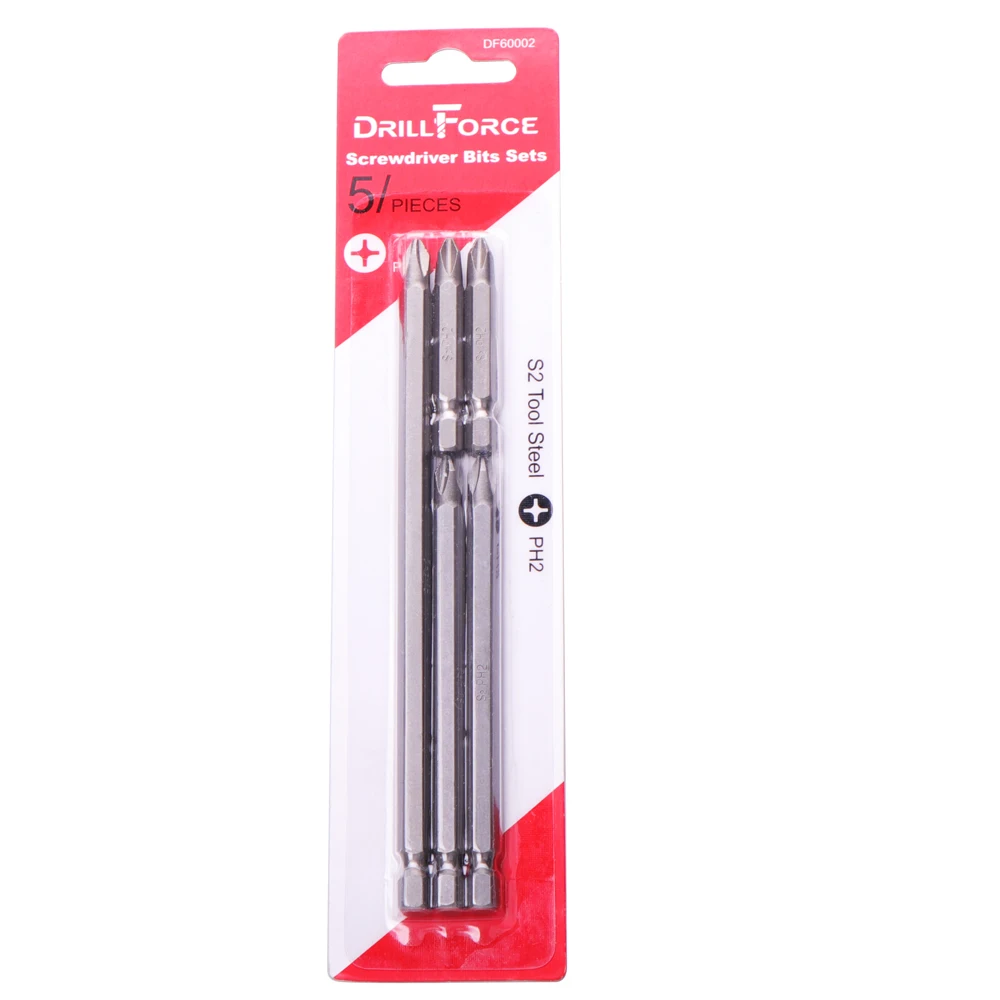 Набор насадок для отверток Drillforce S2 CR-V, шестигранный хвостовик (2 шт., 2 дюйма, 2 шт., 4 дюйма, 1 шт., 6 дюймов)