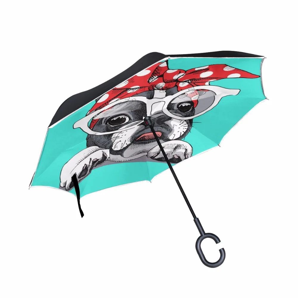 Французский бульдог обратный Зонты складной двухслойный перевернутый Chuva зонтик само стоять наизнанку защита от дождя C-Hook Hands
