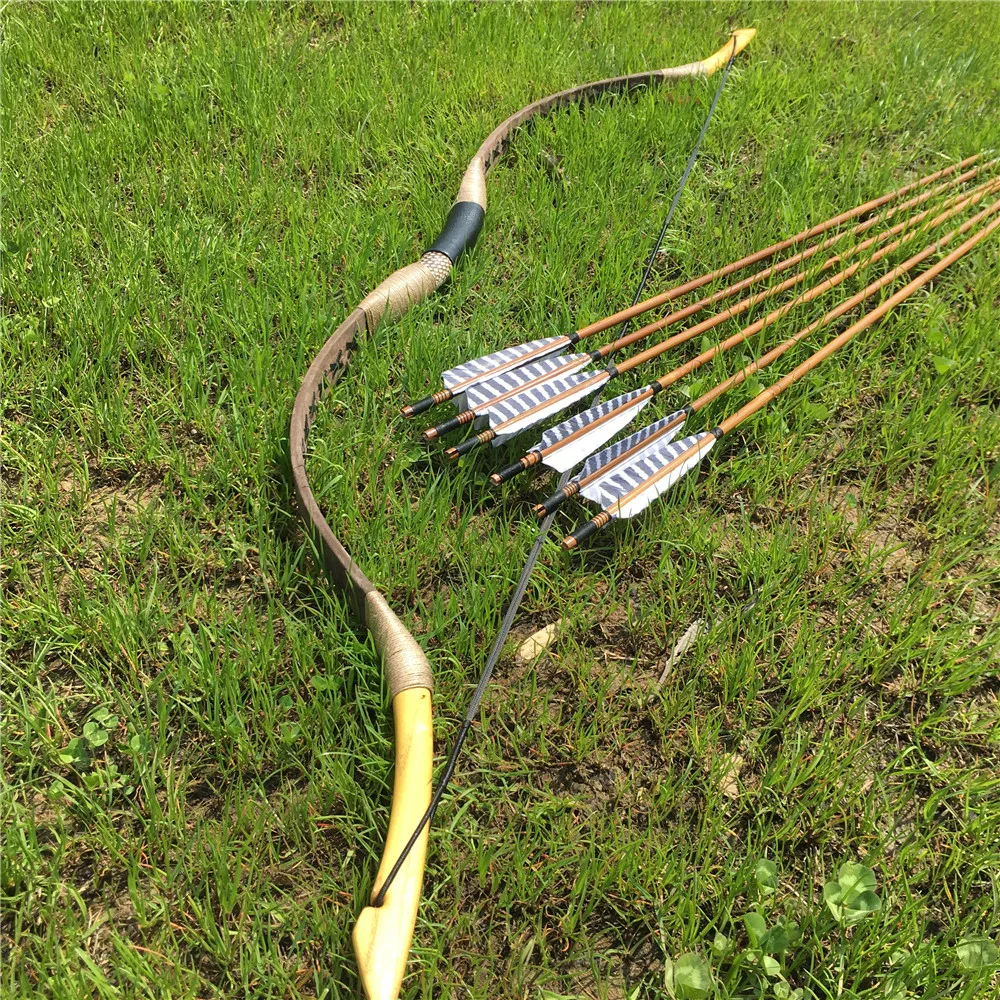 20-80IBS коричневый традиционный лук в венгерском стиле Изогнутый длинный бант + 6 стрел для стрельбы из лука на открытом воздухе