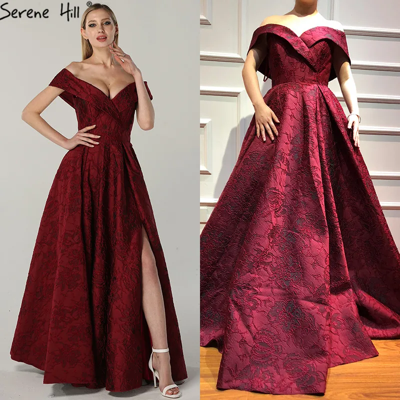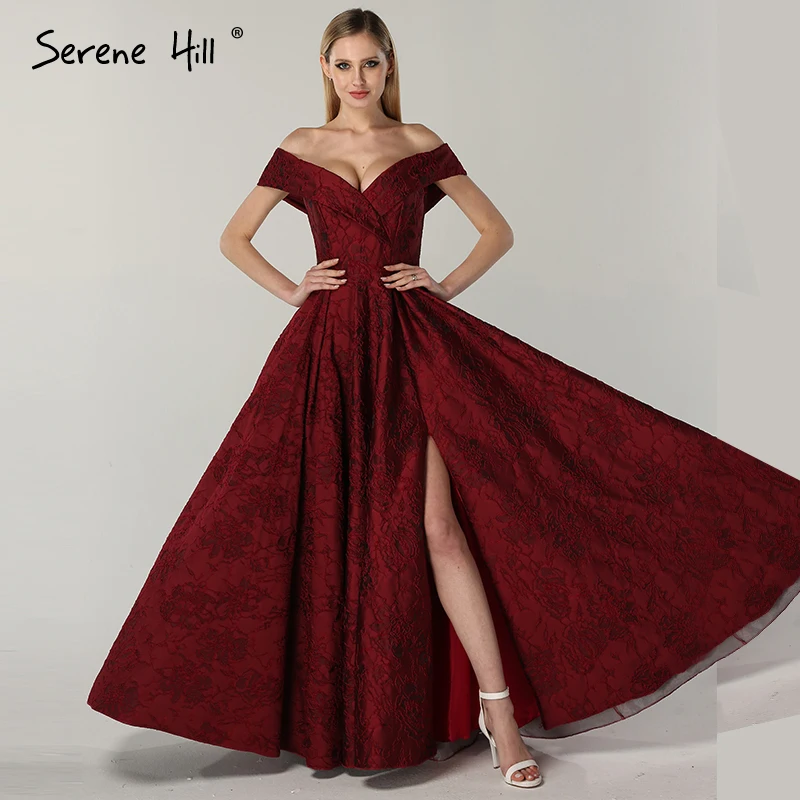 2021 Новейшие Дизайнерские Длинные красные платья с открытыми плечами, сексуальные модные вечерние платья Serene Hill LA6484