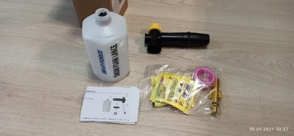 Посылка пришла в Новороссийск очень быстро. Зато на складе транспортной компании она пробыла11 дней!!! В подарок продавец положил шампунь, два пакетика. К пеннику есть инструкция на русском языке... но, как всегда у русских: сначала соберёшь, потом прочитаешь инструкцию. В работе ещё не пробовала. Дополню позже.