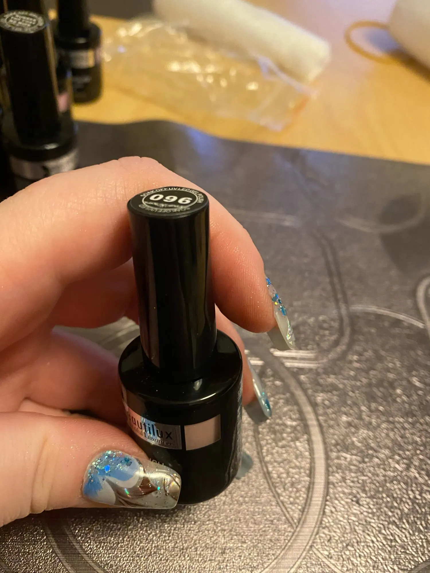 хороший плотный лак, всё как на фото, качество как всегда отличное :) сохнет очень хорошо за 30сек в led, носится прекрасно!