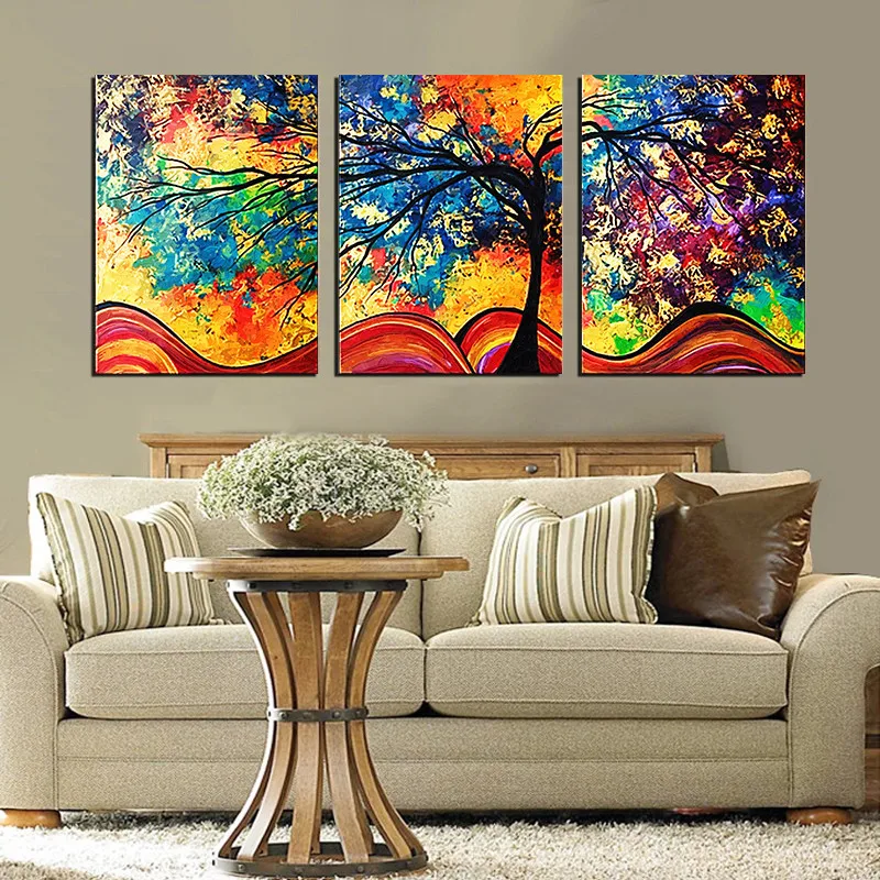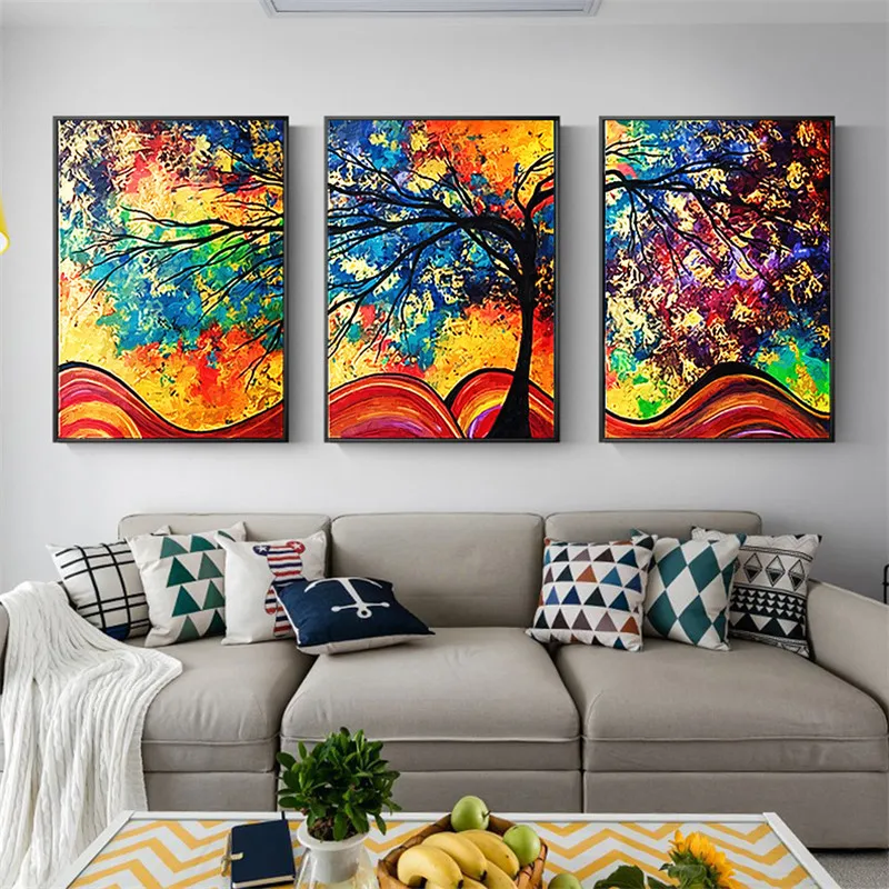 3 шт. Настенная картина холст без рамки абстрактная масляная живопись дерево ландшафт Печать холст картины для гостиной домашний декор