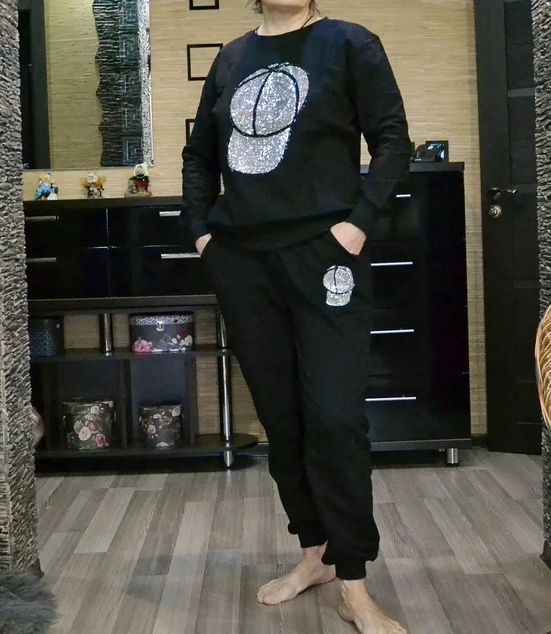 Я очень довольна покупкой,качество отличное,швы все ровные,без торчащих ниток,ткань приятная к телу хлопок с полиэстром,на прохладную погоду.бусины все на месте,держатся крепко.На 48 р оказался большеват,мои размеры о.г -96 о.б-104 рост 165.свитшот xxl,штаны xxxl, на размер меньше было бы идеально.Спасибо продавцу за труды,здоровья и процветания в бизнесе! к покупке однозначно рекомендую.