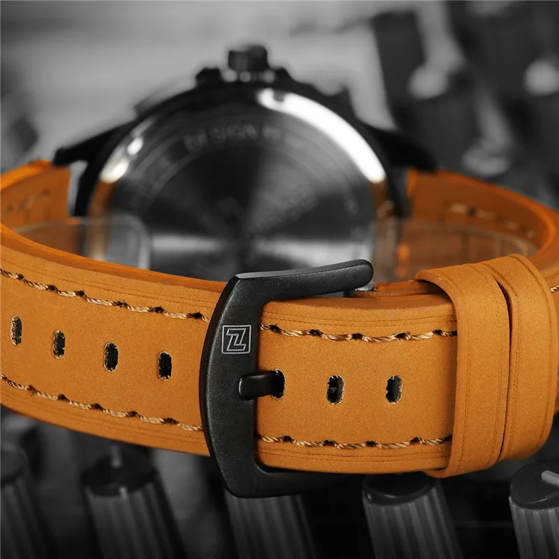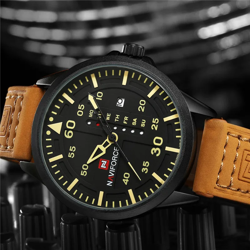 Часы наручные NAVIFORCE Мужские кварцевые, спортивные брендовые Роскошные армейские деловые, в стиле милитари, с кожаным ремешком, с отображением даты и недели, 9074