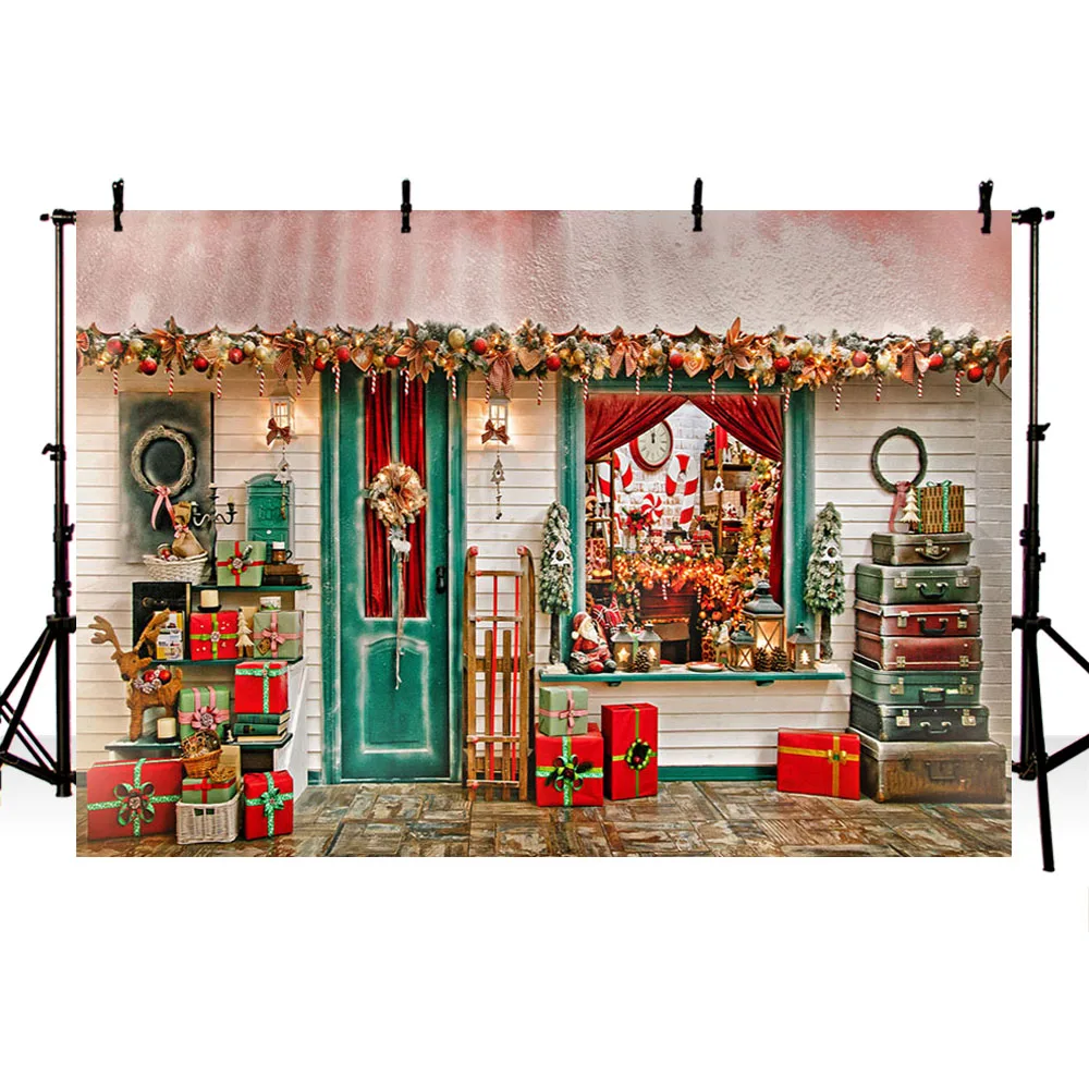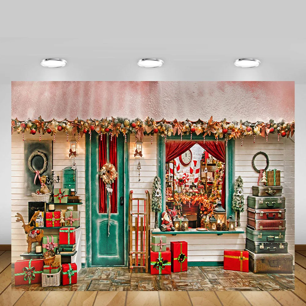 Виниловые Рождественские фоны Mehofond для магазина, красный подарок, украшения, магазин, деревянный дом, фотофоны для фотостудии
