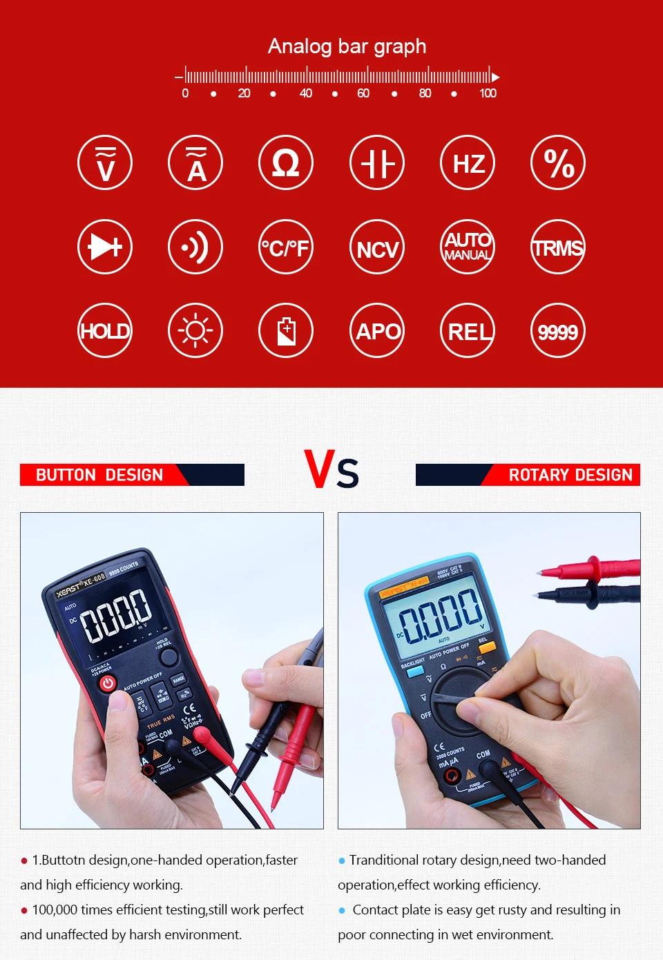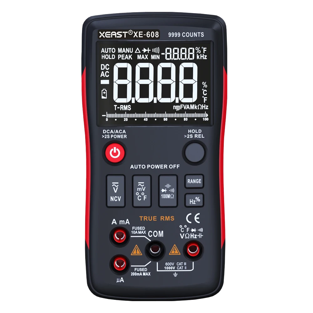 2. XE-608True-RMS цифровой мультиметр с автоматическим диапазоном Вольтметр переменного/постоянного тока Амперметр Кнопка 9999 отсчетов NCV Удержание данных ЖК-дисплей с подсветкой