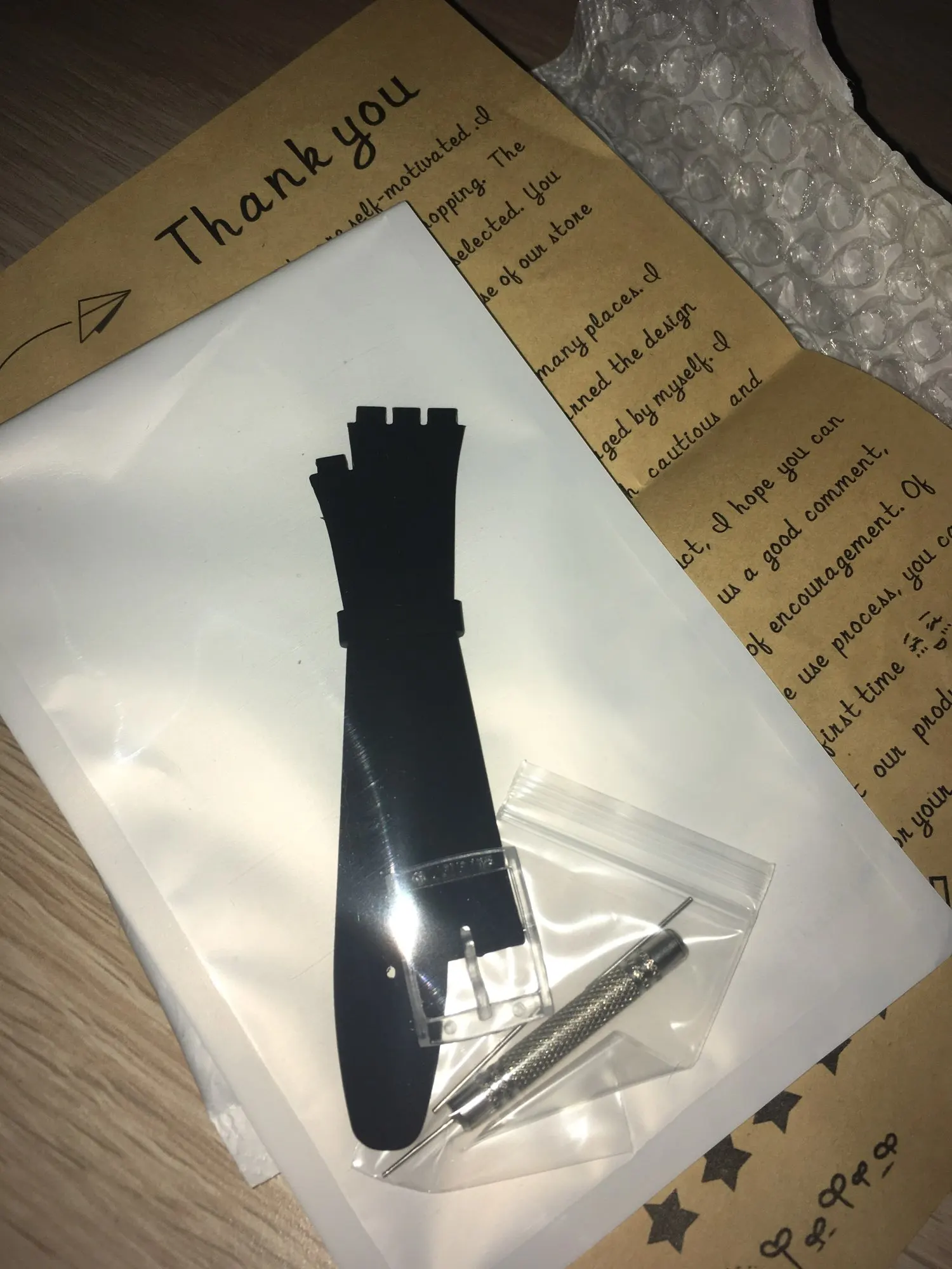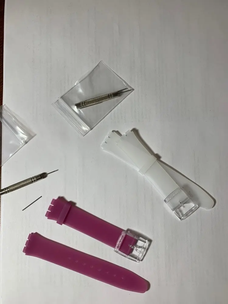 Ремешок очень хорошего качества. Цвет немного ярче оригинального Swatch. Силикон плотнее,чем оригинал.Надеюсь будет прочнее.